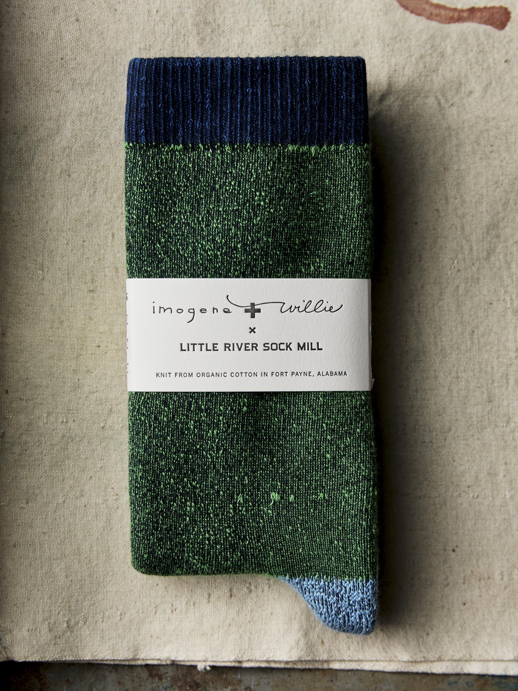 each pair is thoughtfully made in Fort Payne. Alabama. in collaboration with the second-generation sock makers at Little River Sock Mill. from Texas-grown certified organic cotton.
