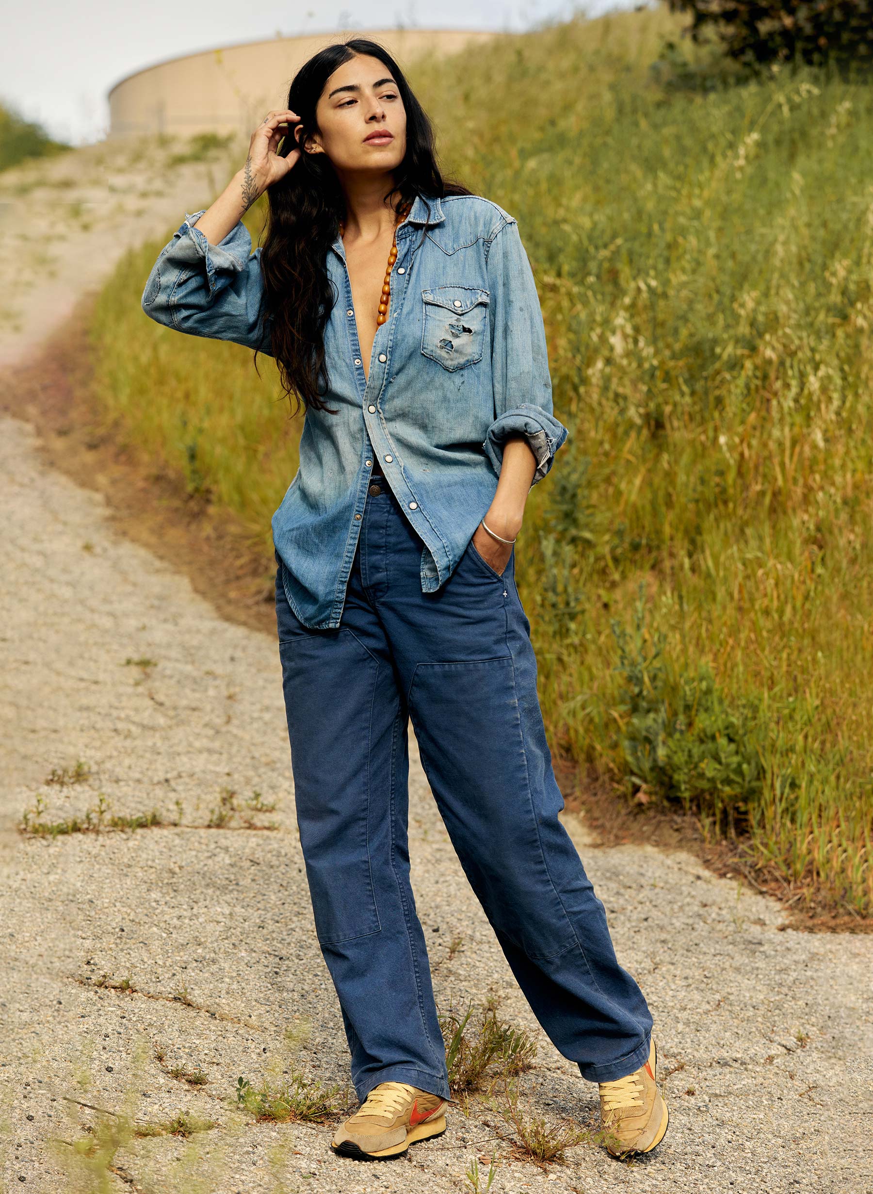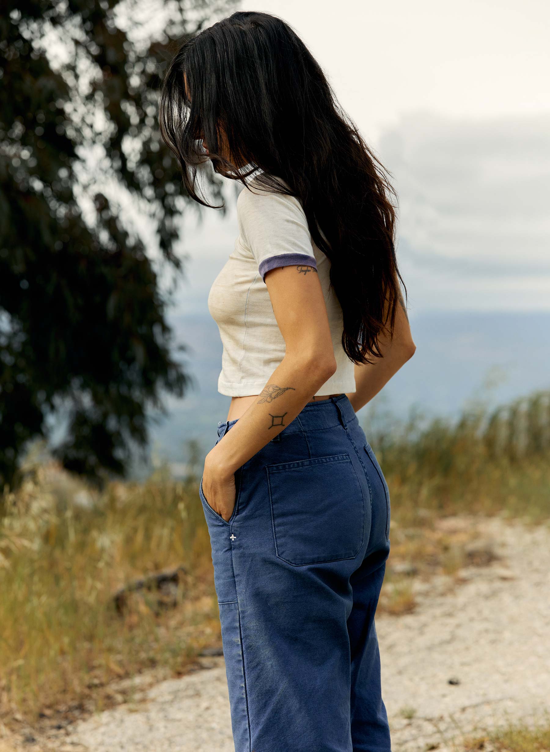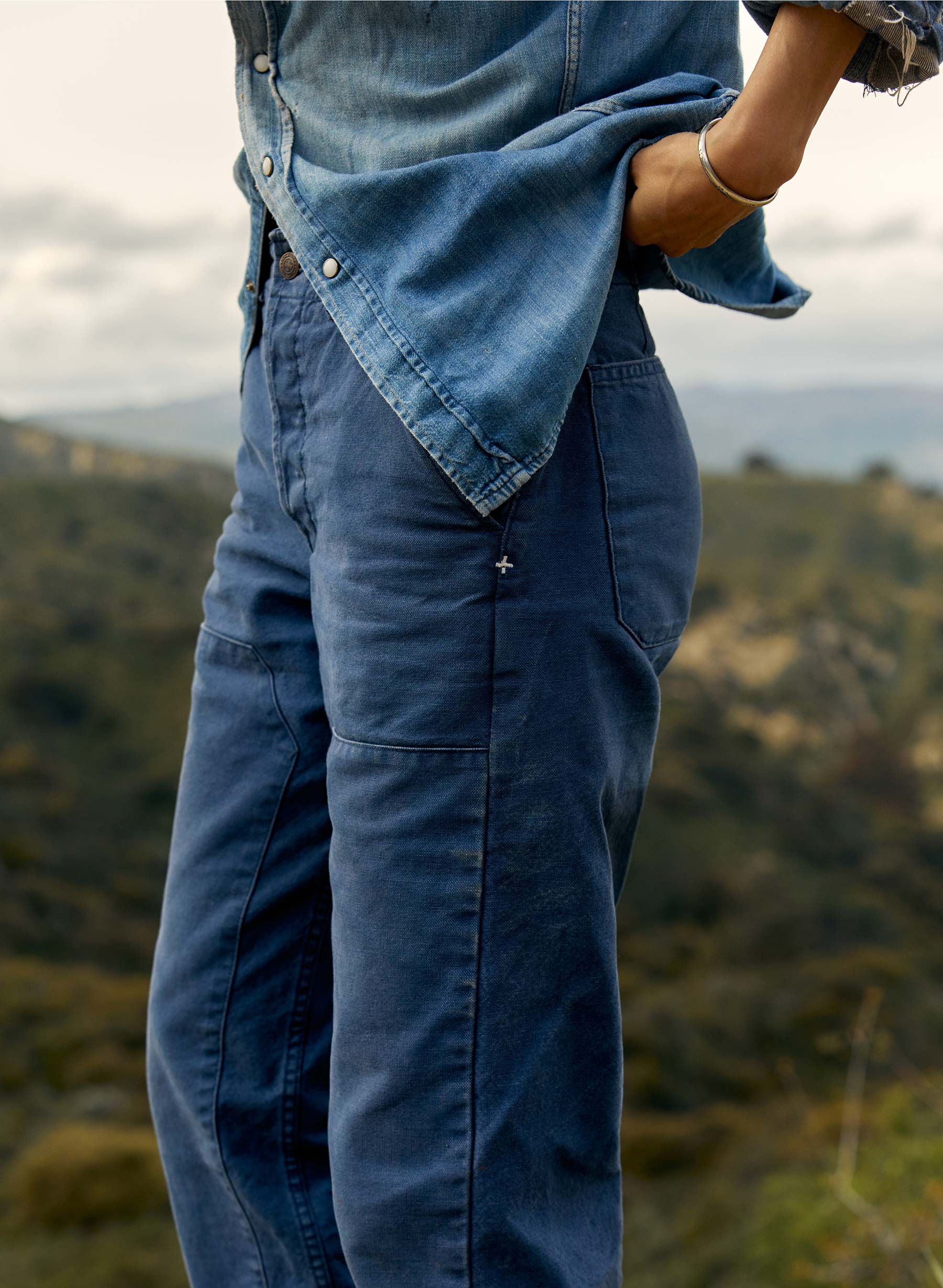 our iconic women’s double-knee / patch-pocket workpant featuring an updated. more flattering (and truly classic) silhouette defined by its high-rise and accommodating relaxed leg.