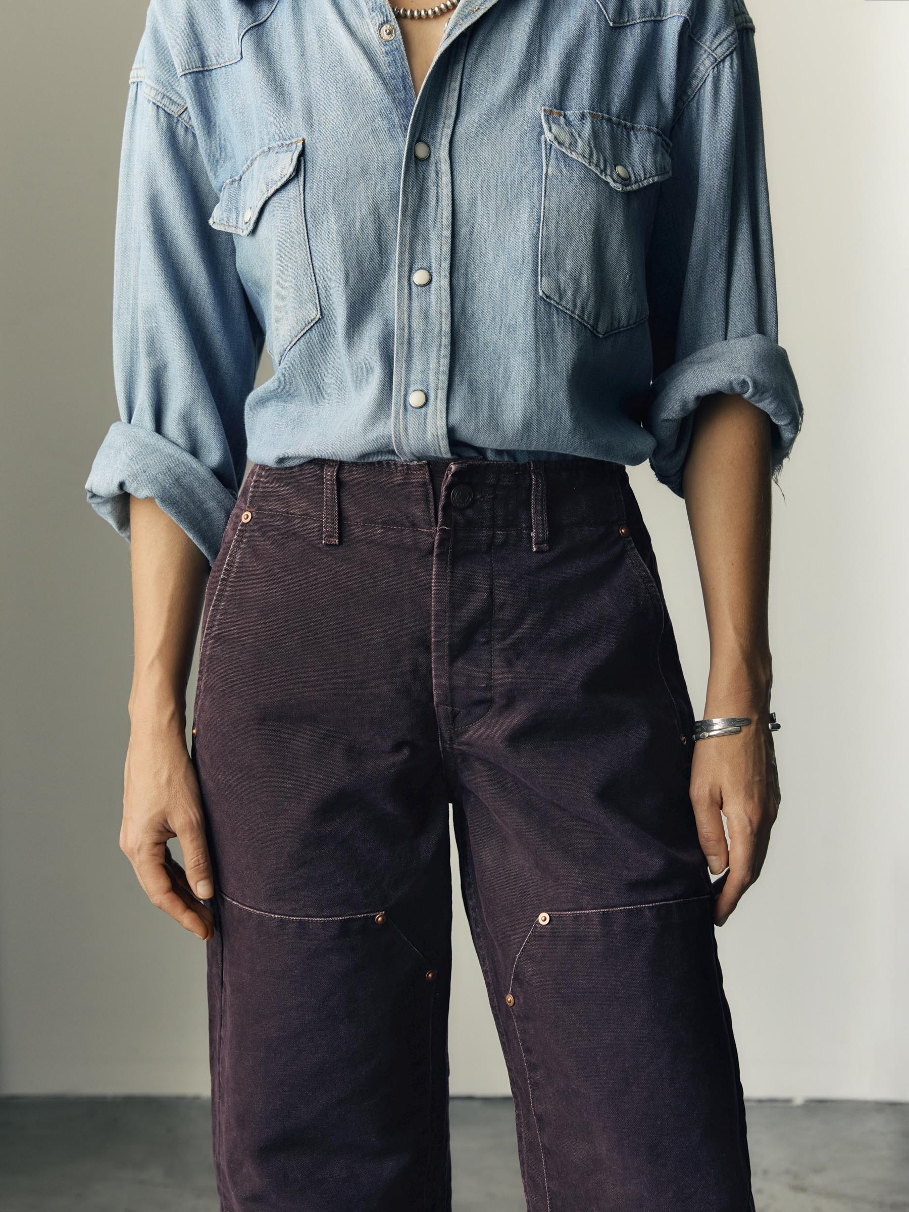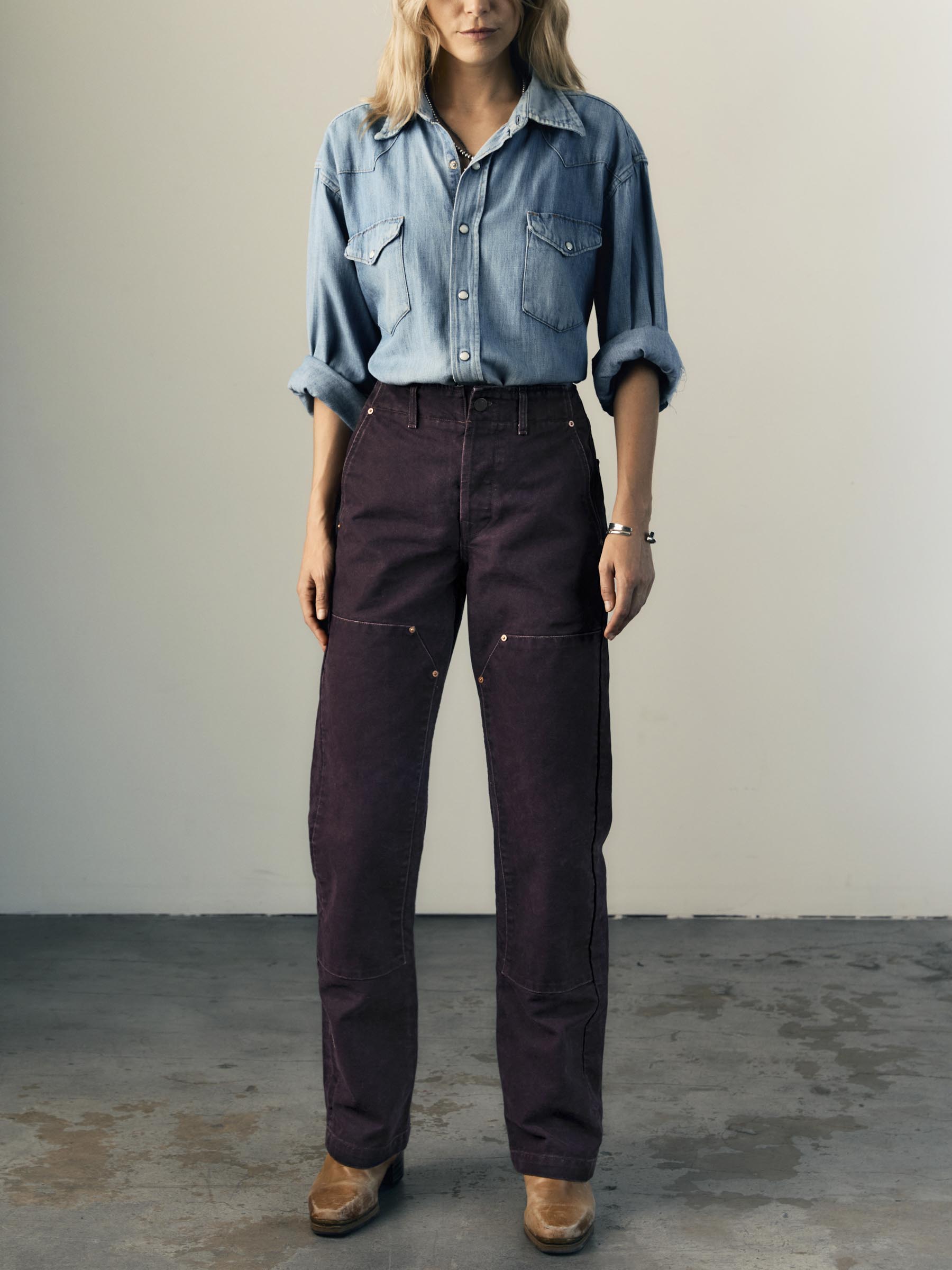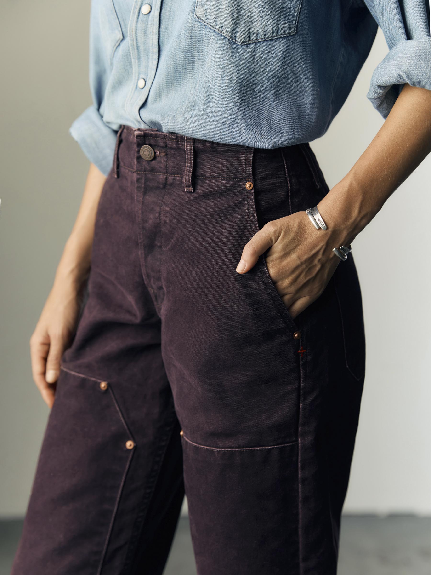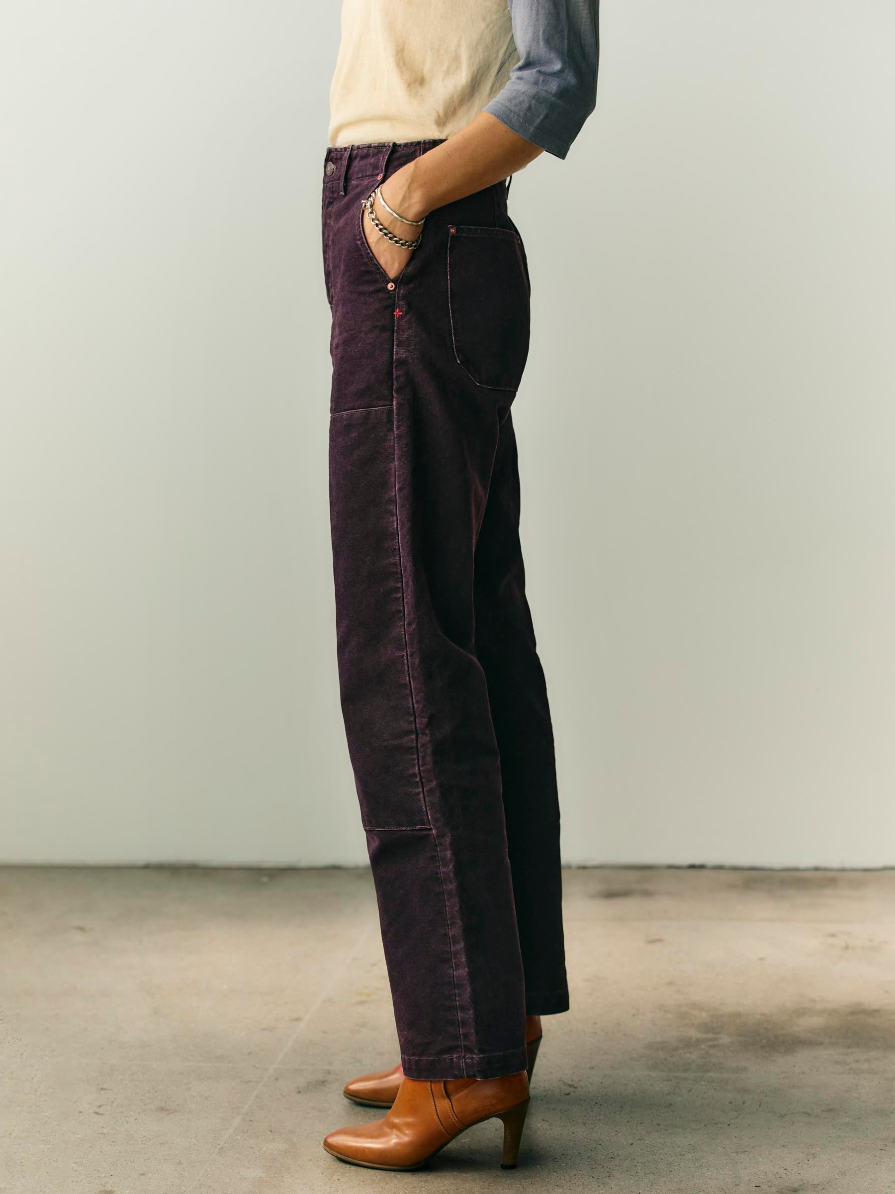 our iconic women’s double-knee / patch-pocket workpant featuring an updated. more flattering (and truly classic) silhouette defined by its high-rise and accommodating relaxed leg.