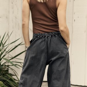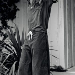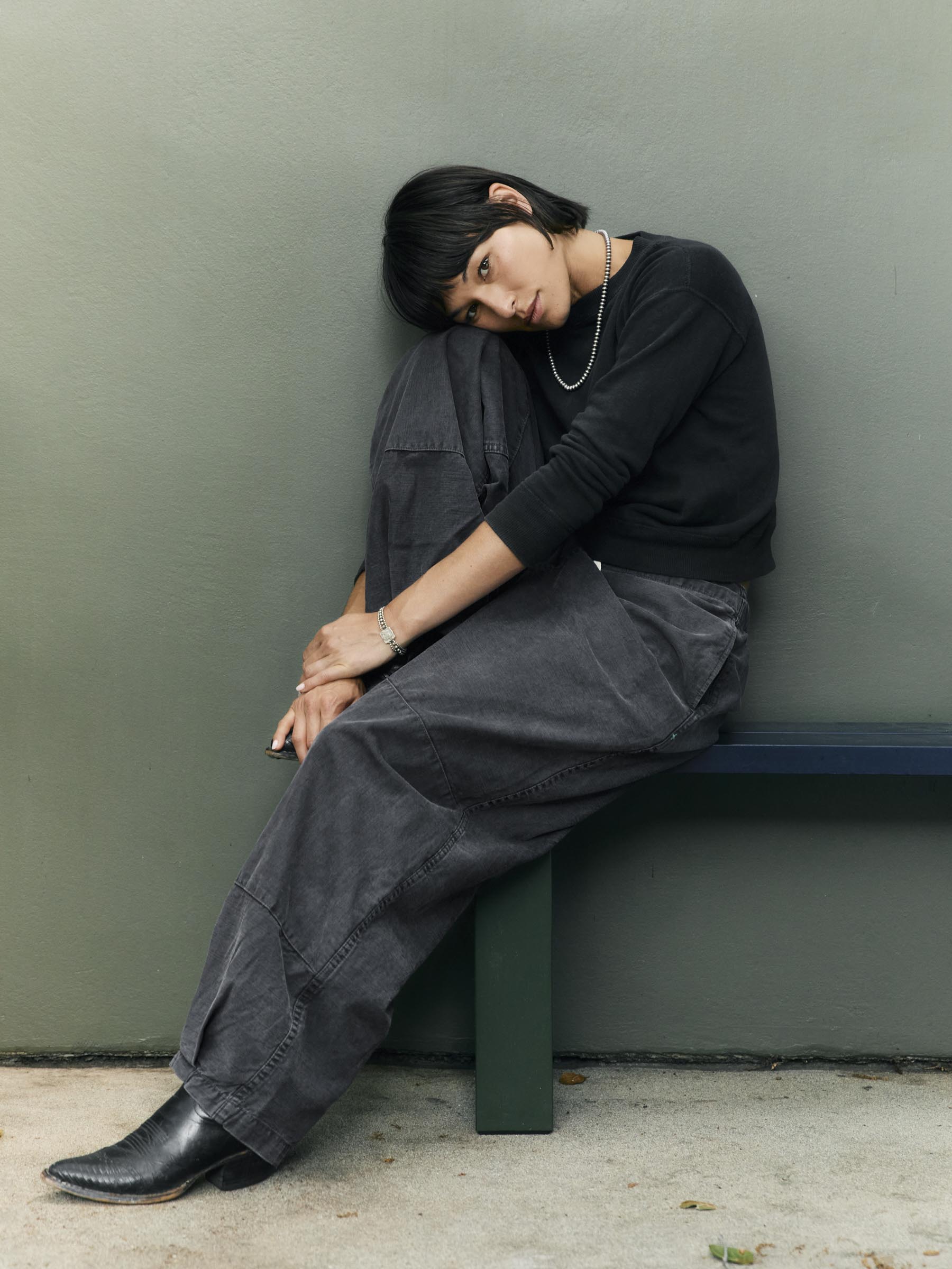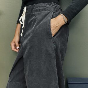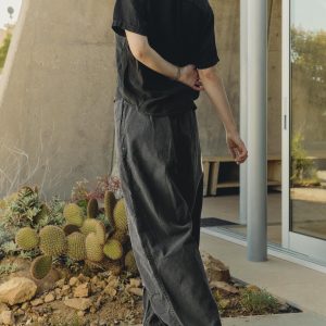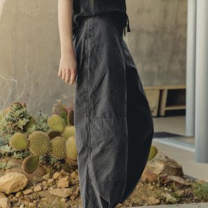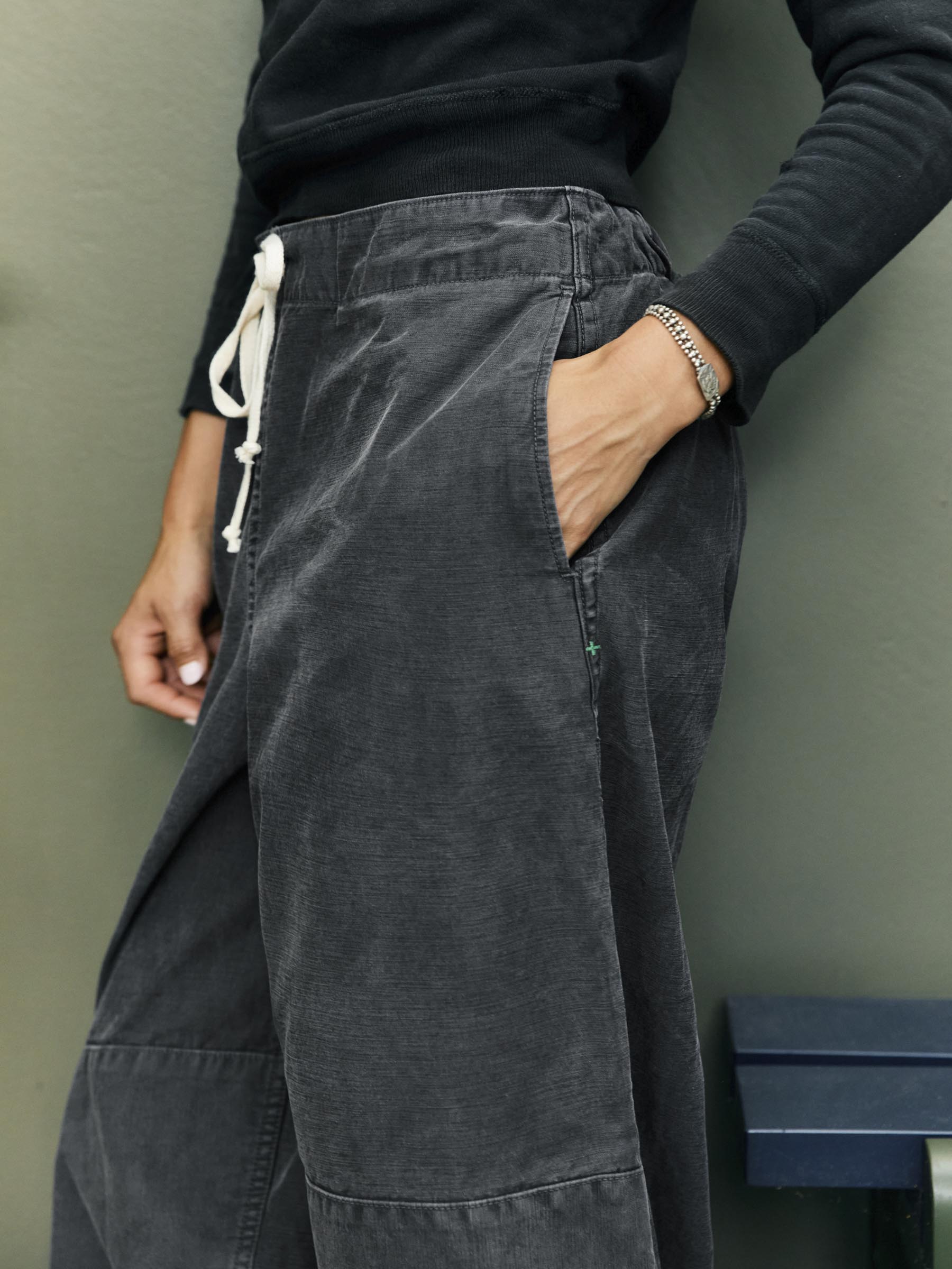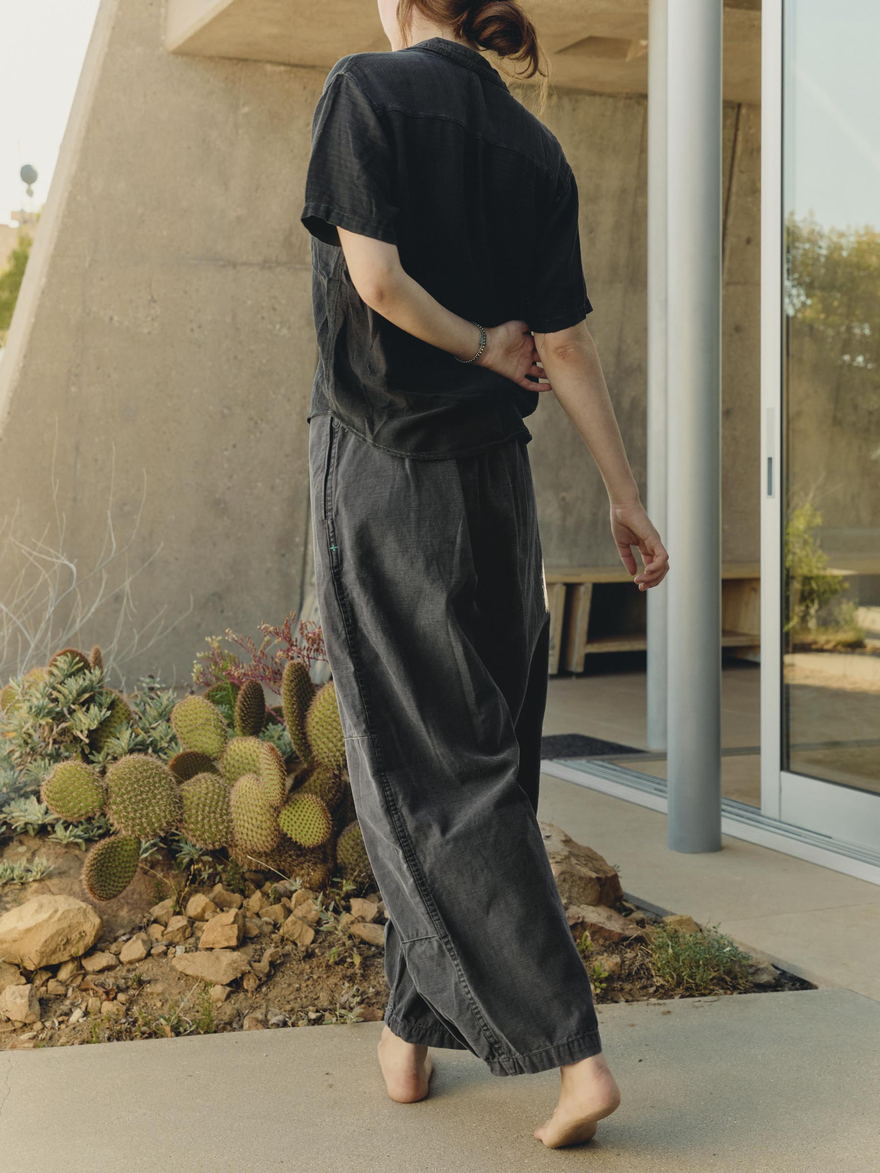 from the drawstring waist to the reinforced double knee. it’s all tied together by a box pleat in the hem — allowing for fullness in the leg without needless volum