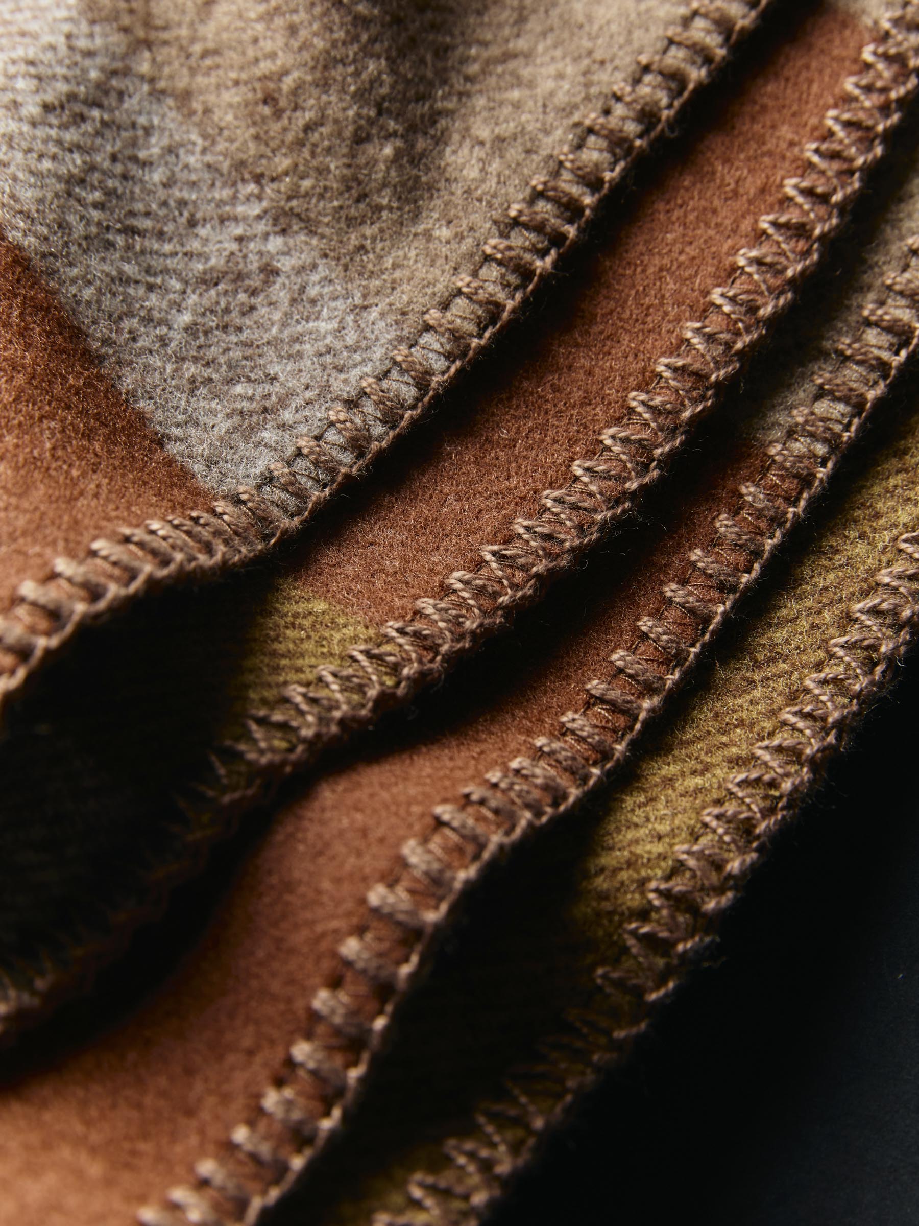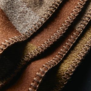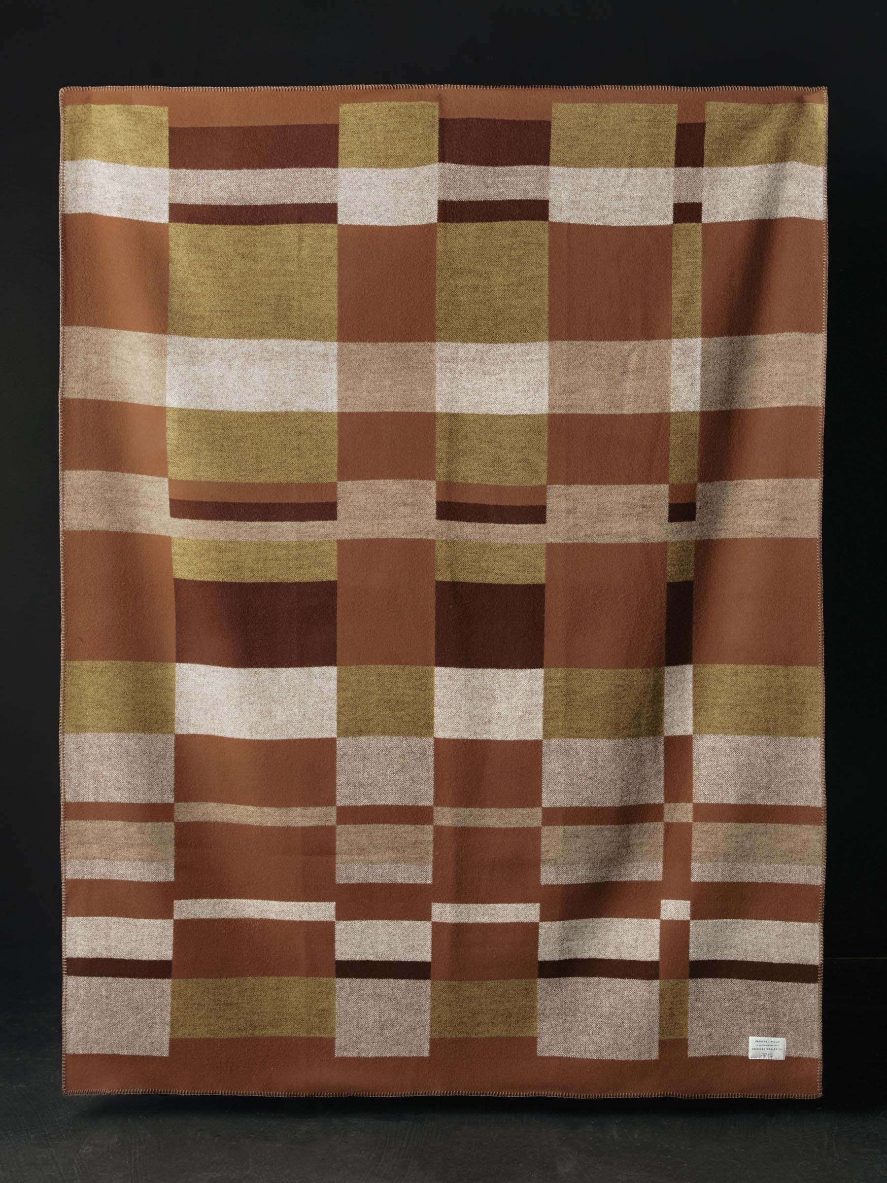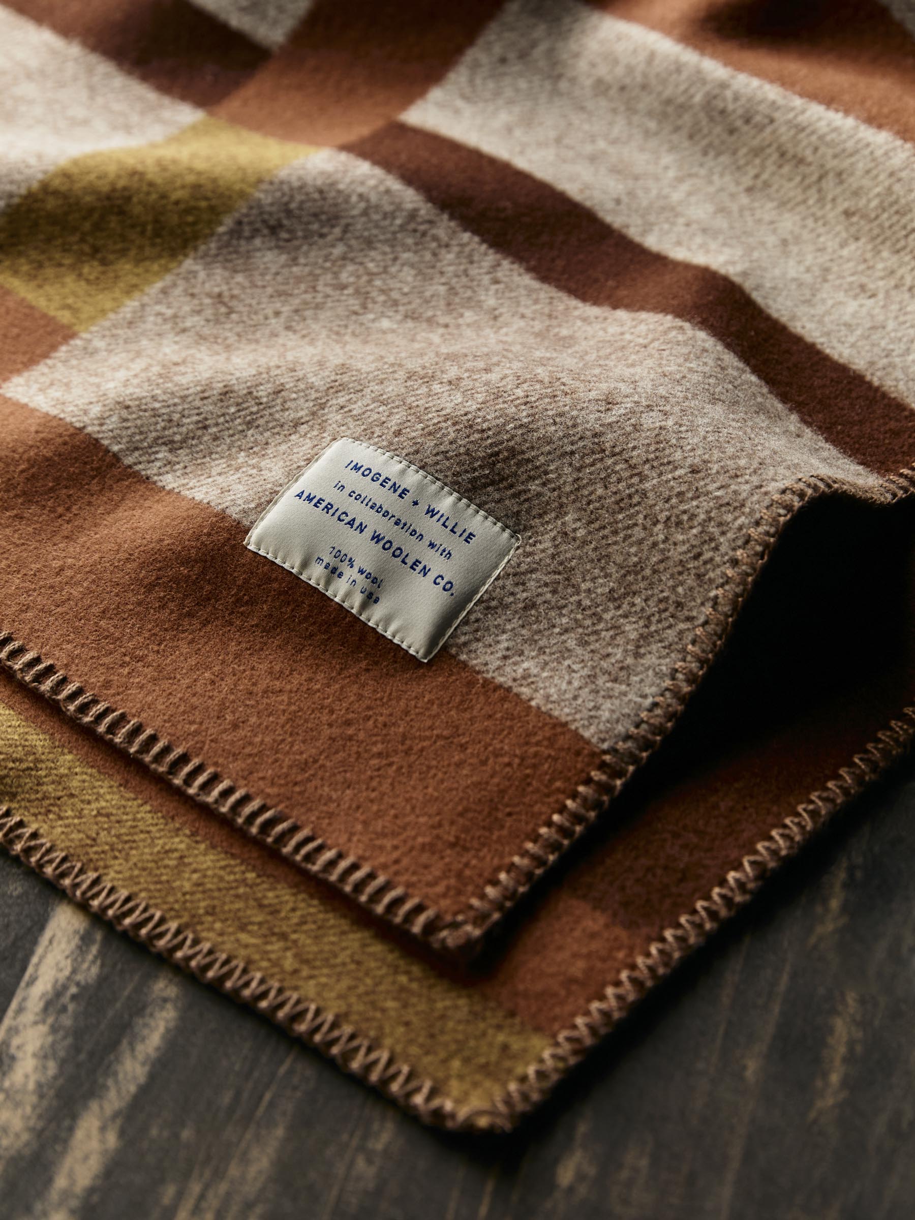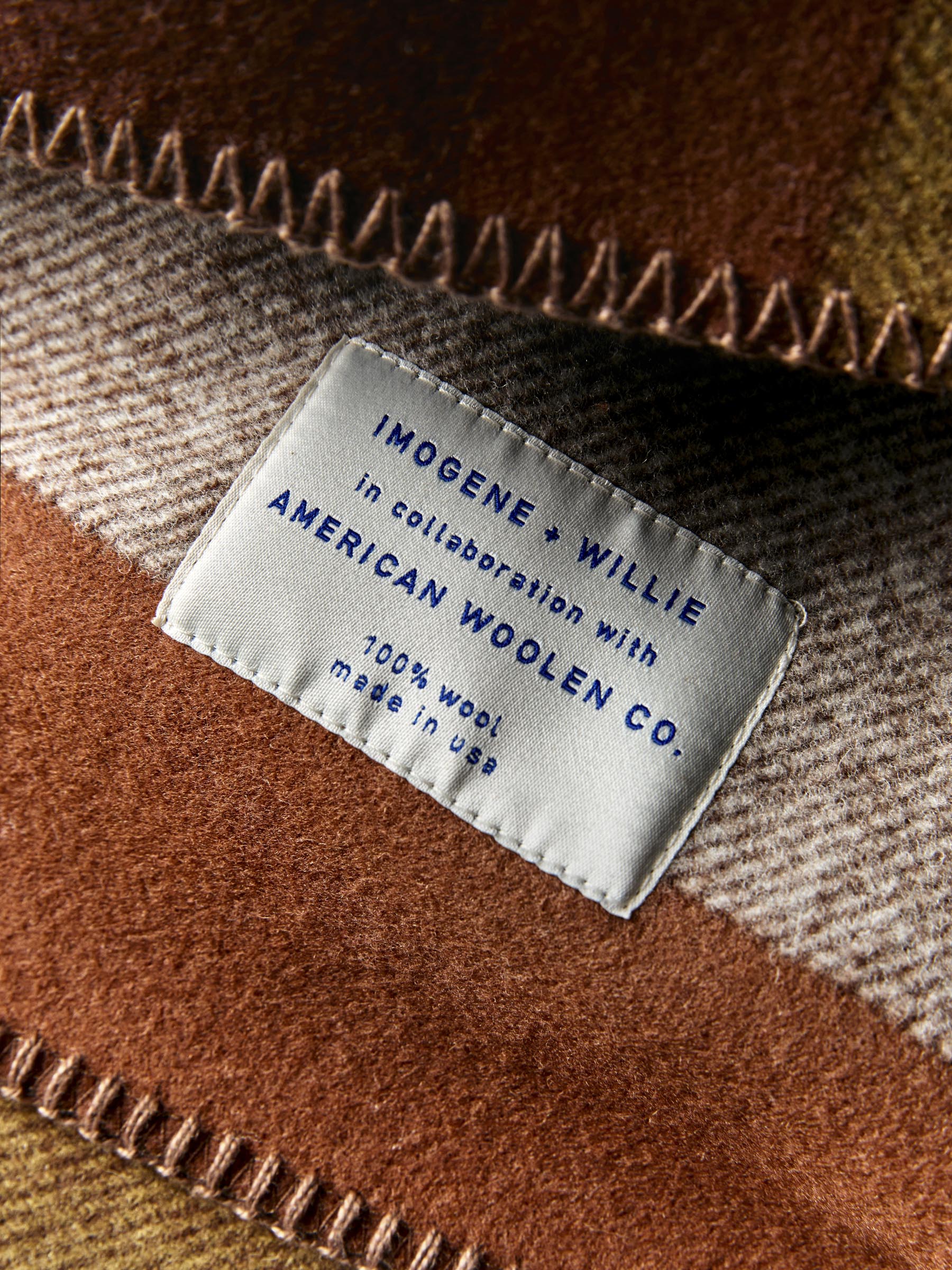 each fabric pattern was designed in-house in collaboration with American Woolen. woven in the USA from a premium blended wool. then finally cut into blankets and finished off with a contrast whipstitch detail.