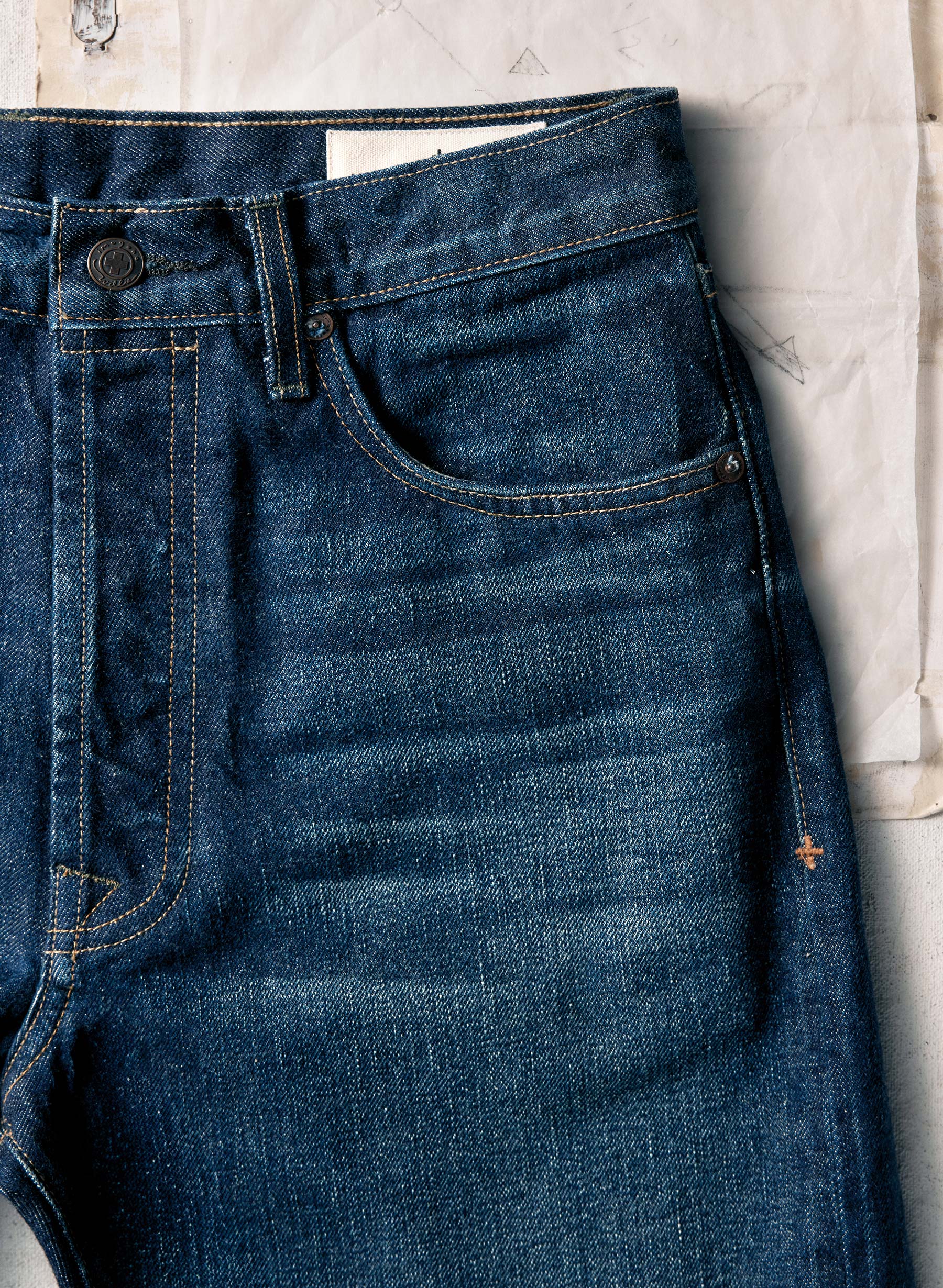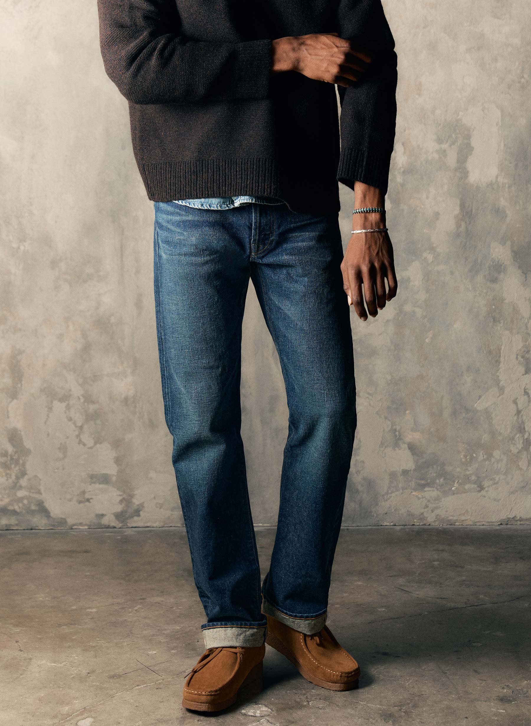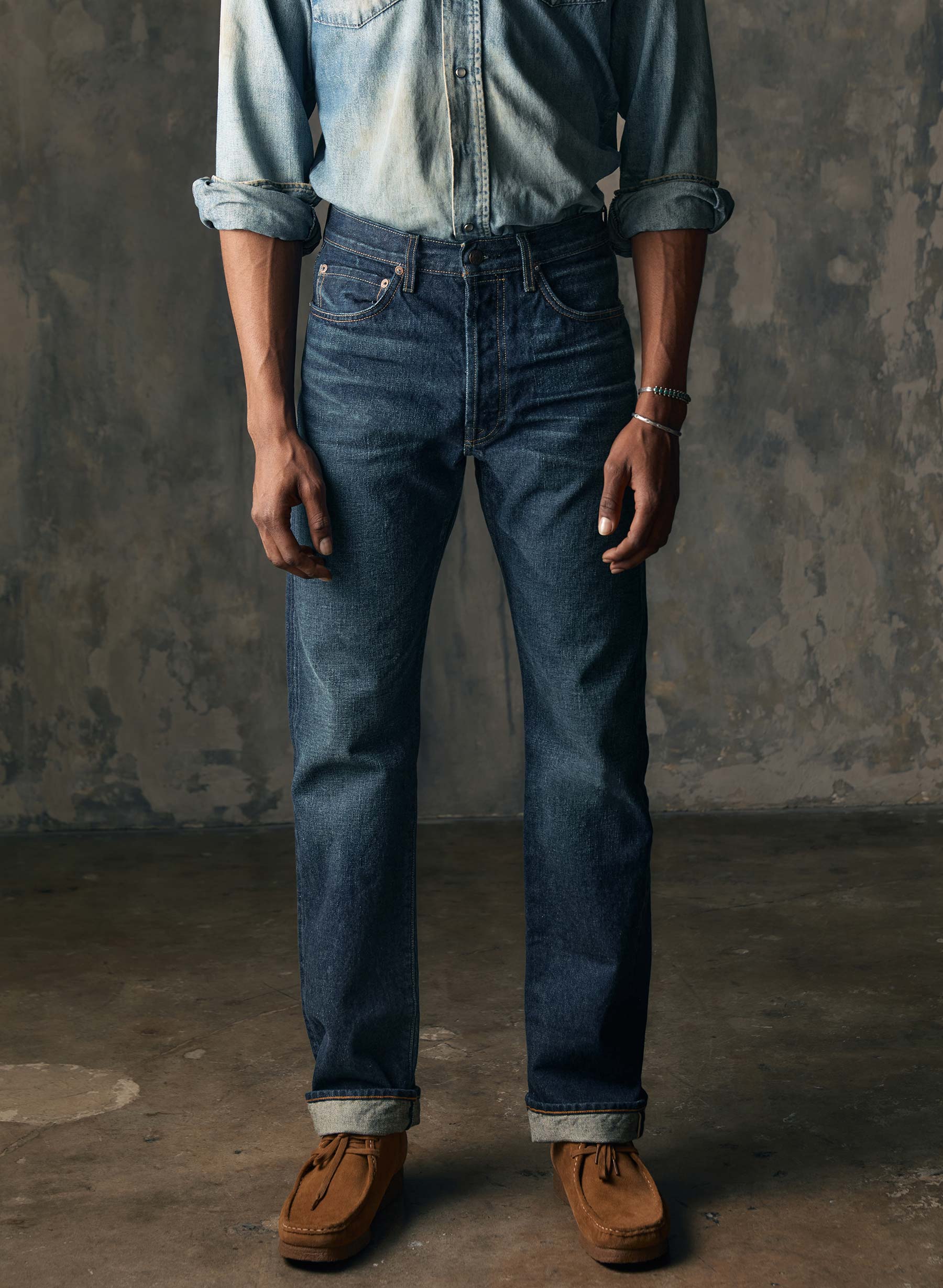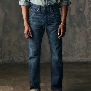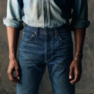 lewis is a high rise that sits above the hips with a relaxed thigh and a straight leg.
