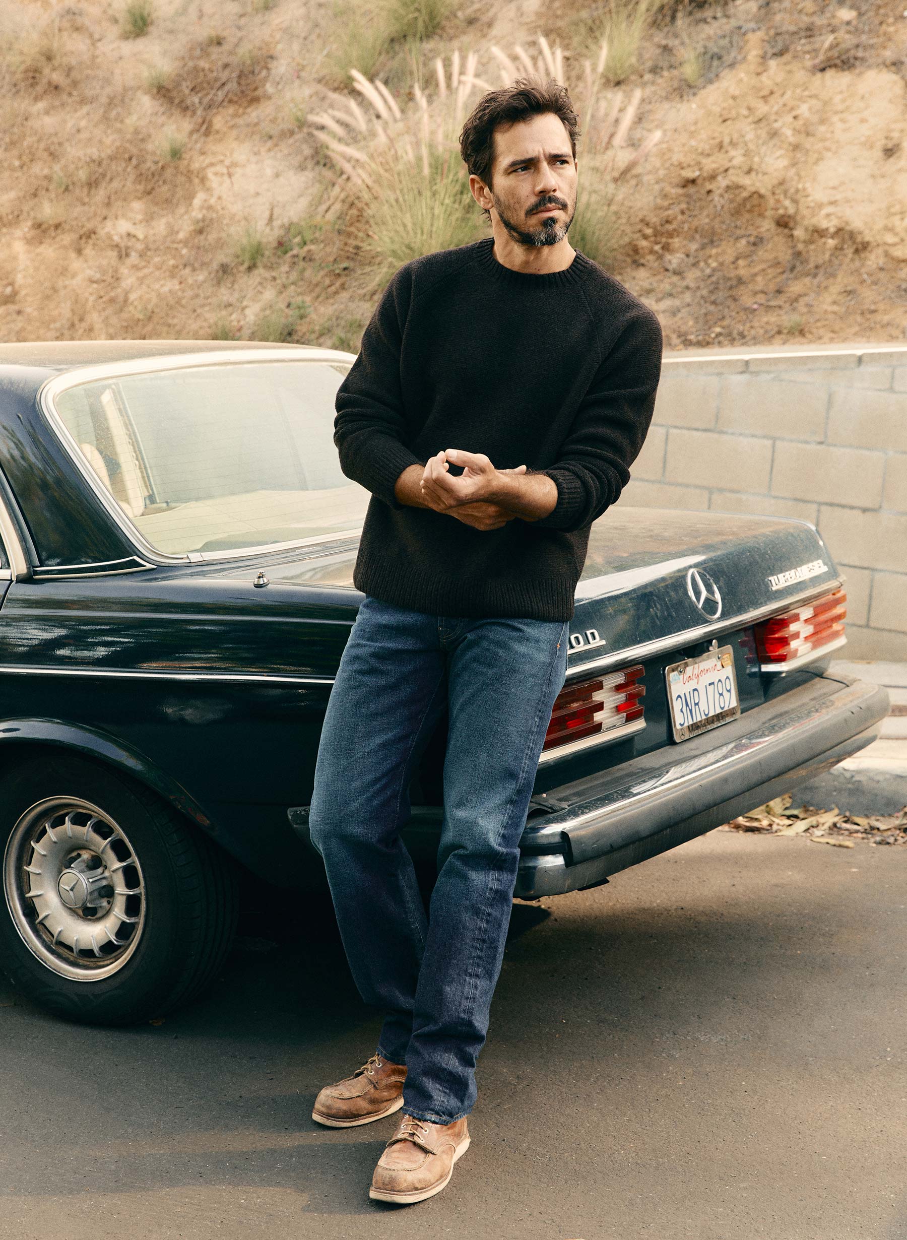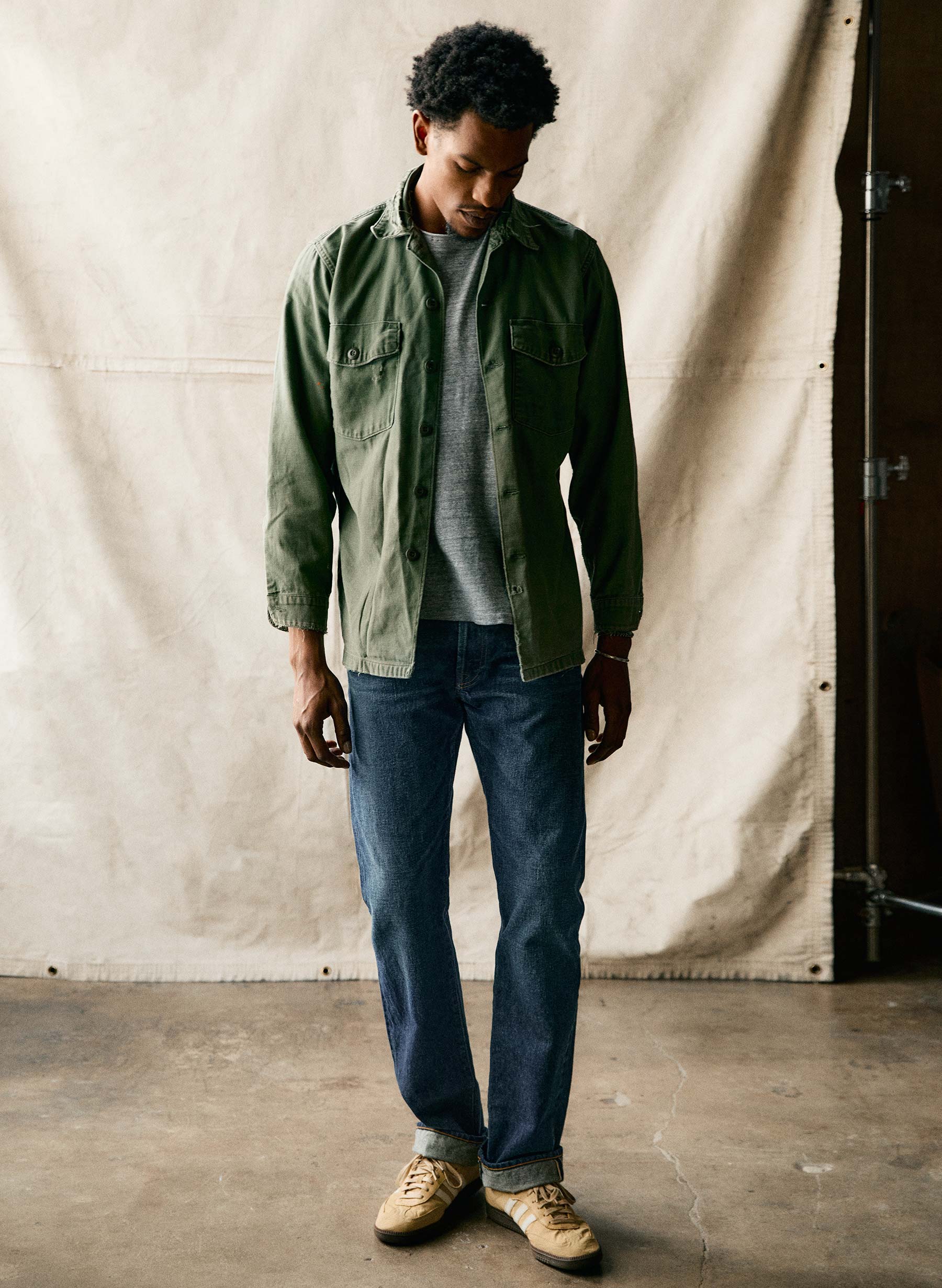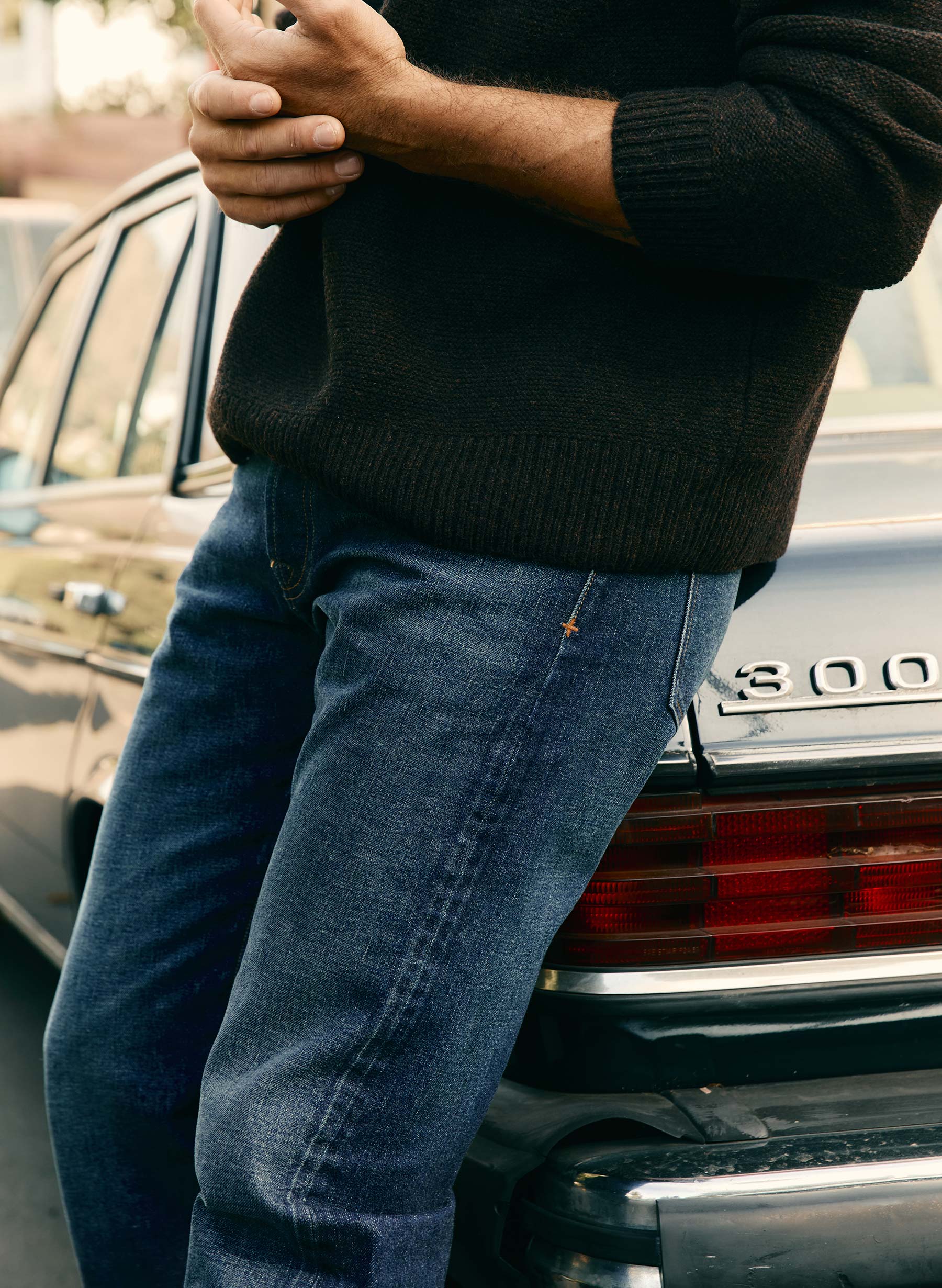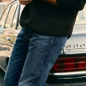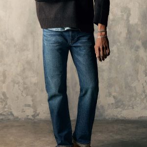 lewis is a high rise that sits above the hips with a relaxed thigh and a straight leg.