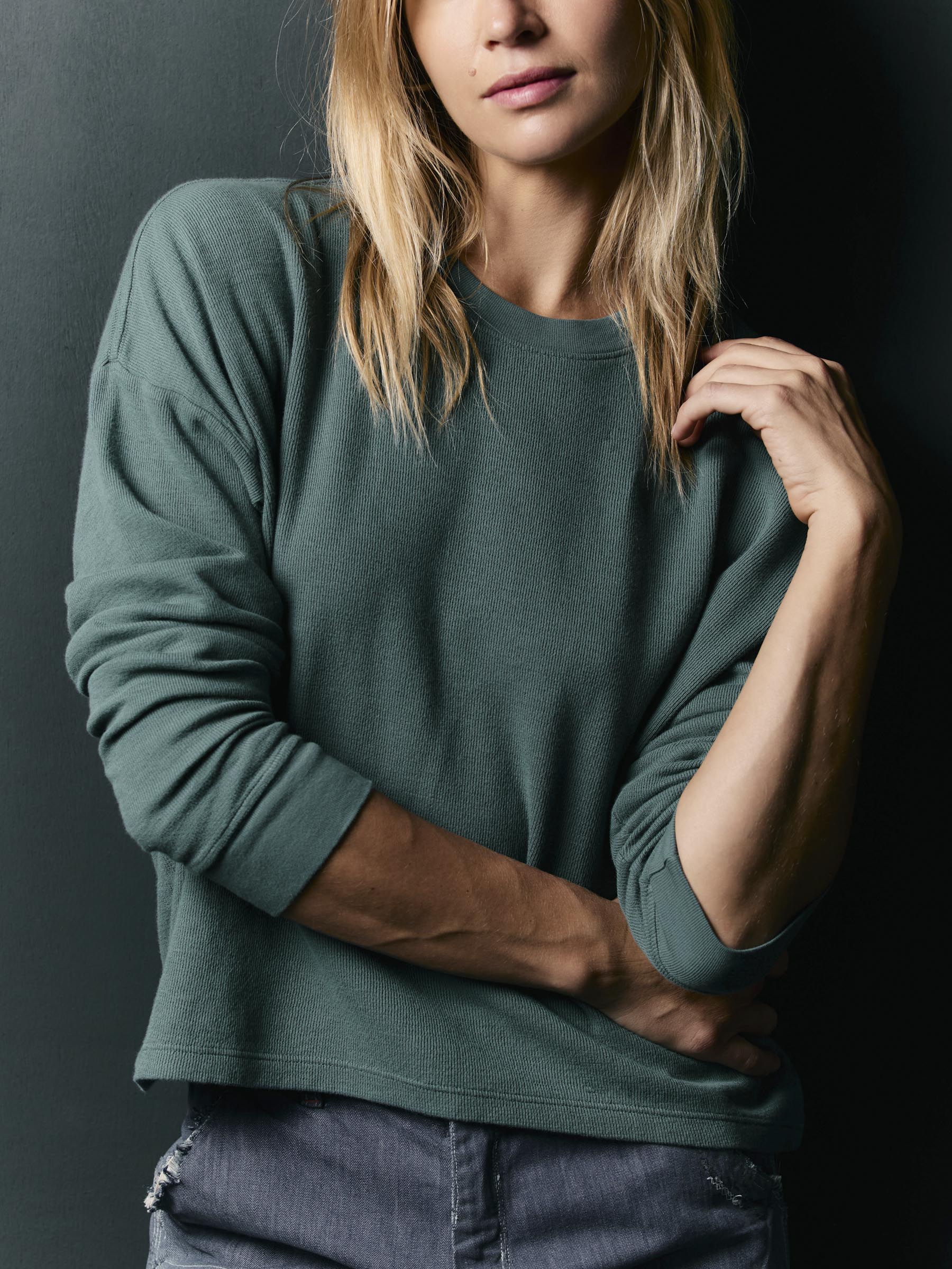 long sleeve midweight crew in spruce