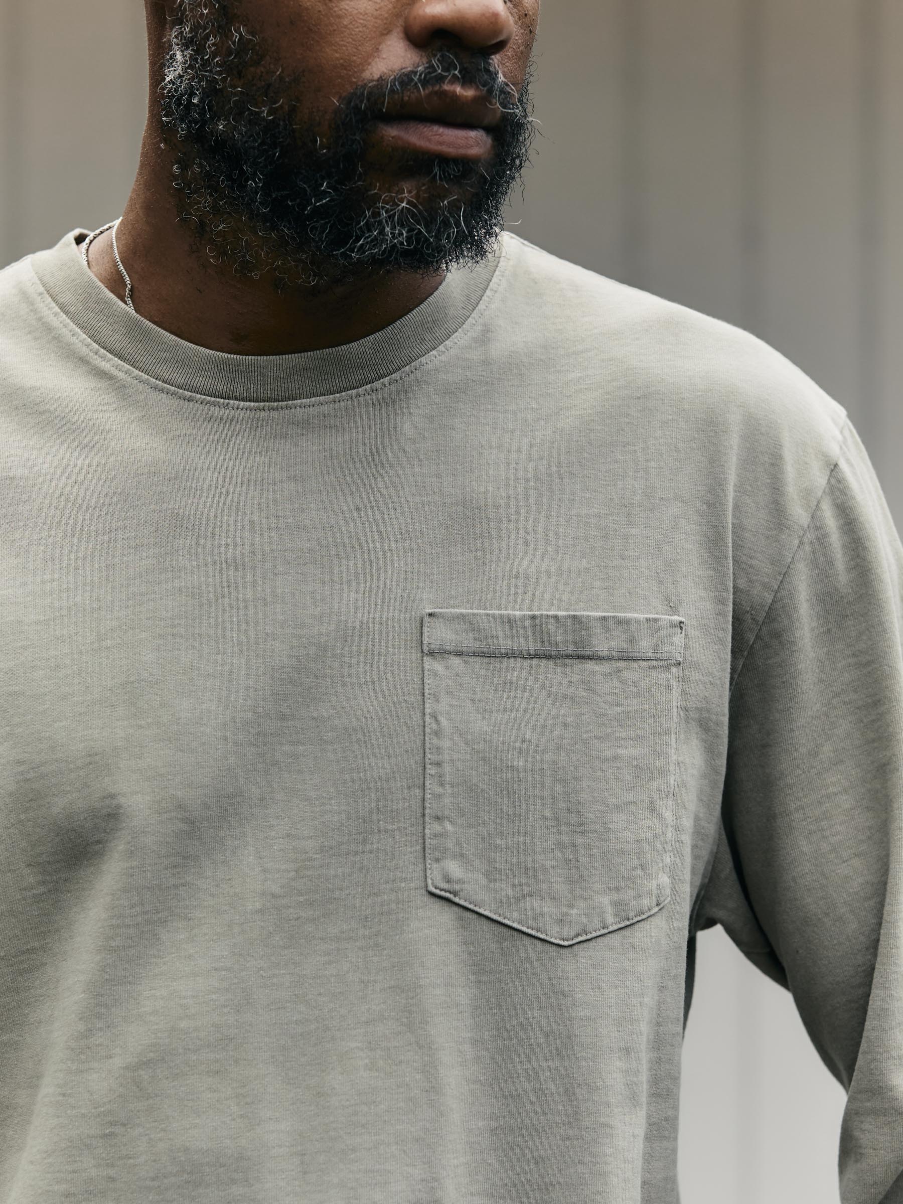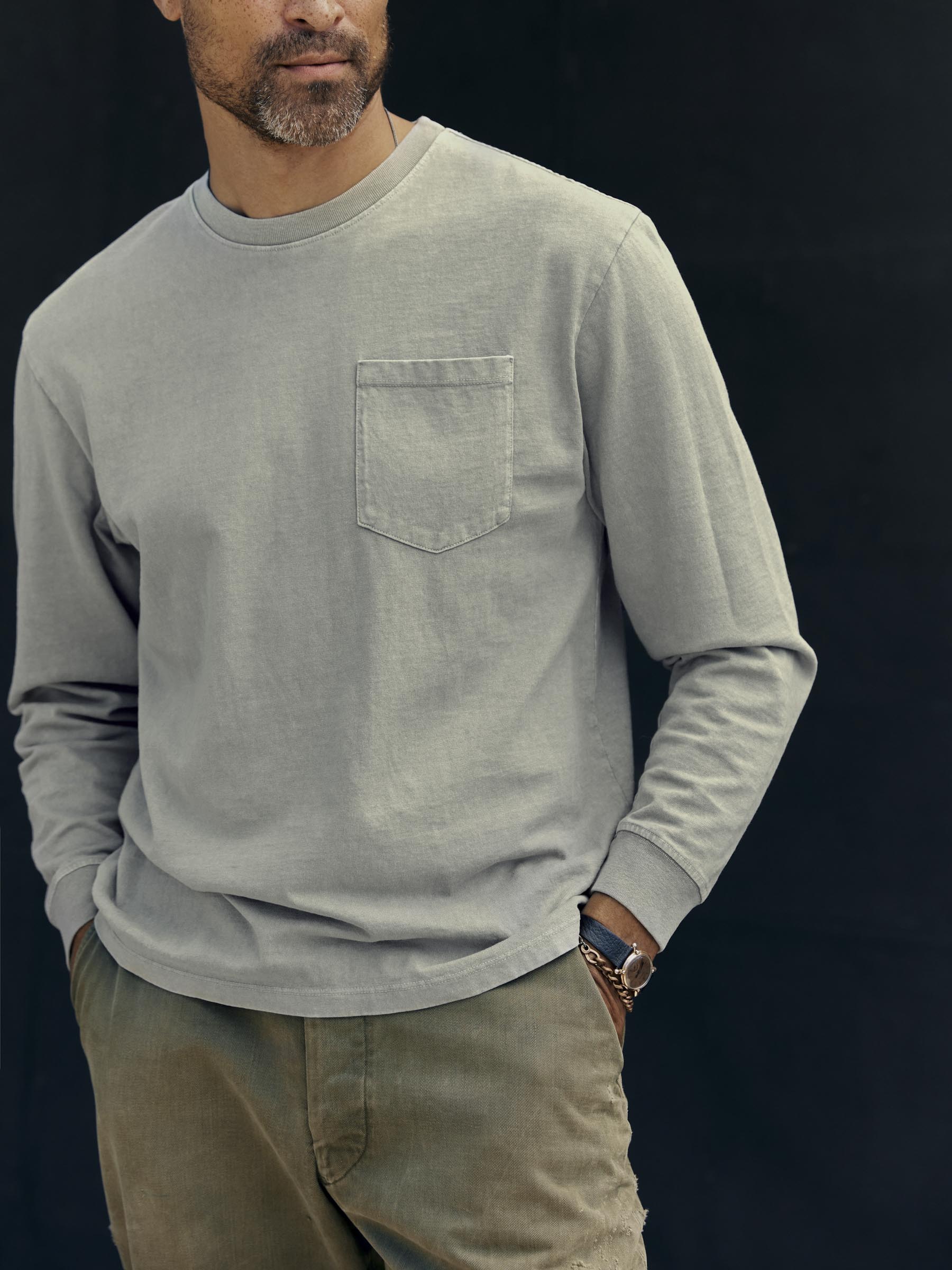long sleeve pocket tee in stone