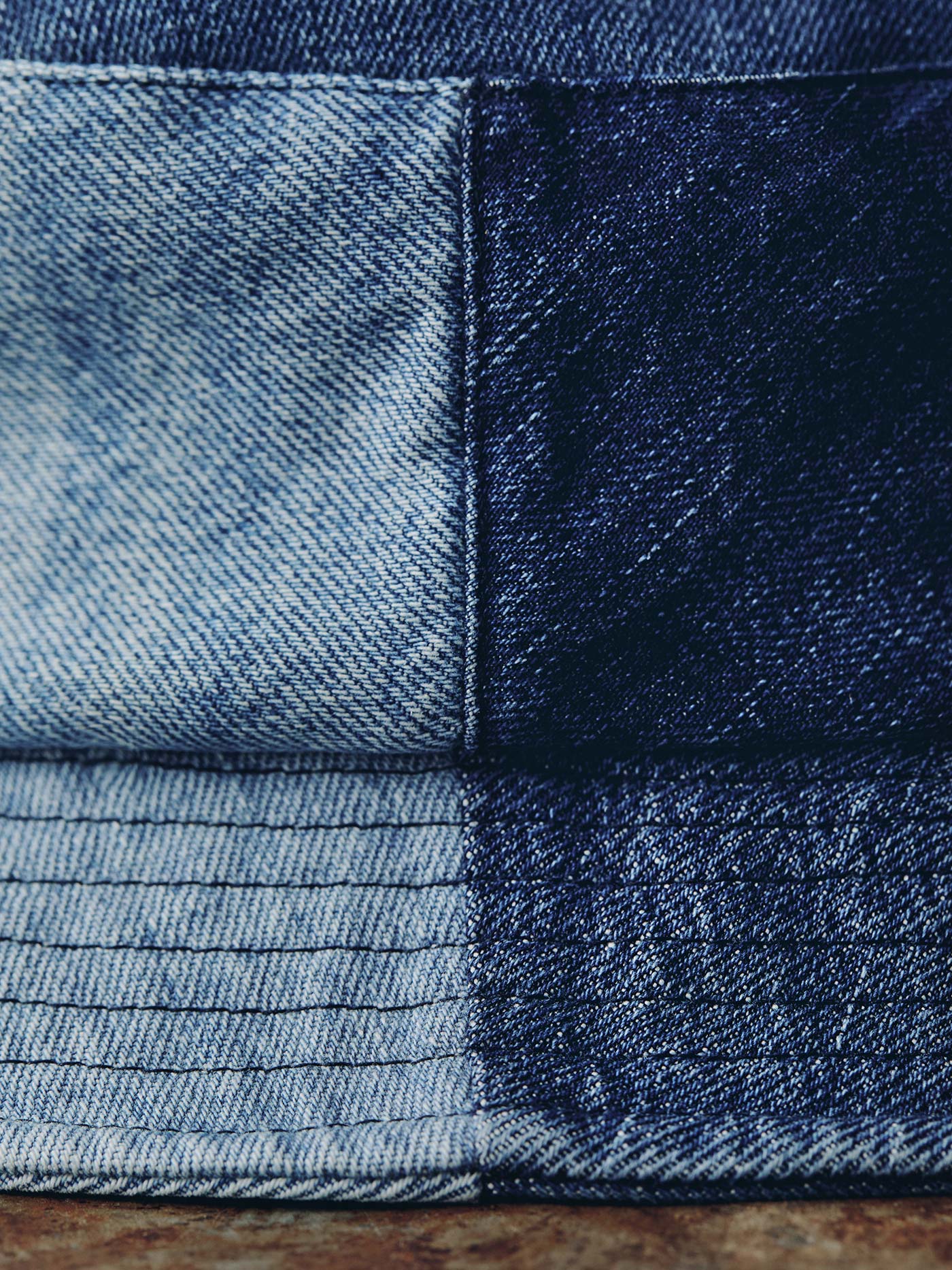 after carefully selecting a handful of beautifully broken-in jeans sent in through our love fades denim recycling program. each pair was cut into panels. assembled into caps. and then finally cut and sewn into their final form.