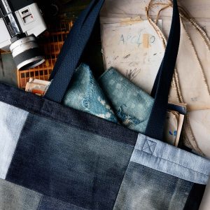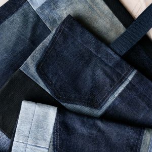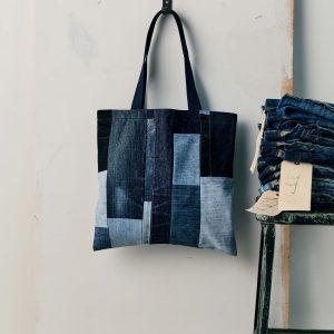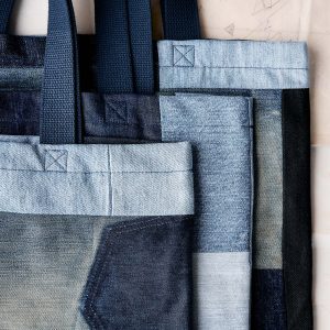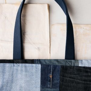 love fades recycled denim tote