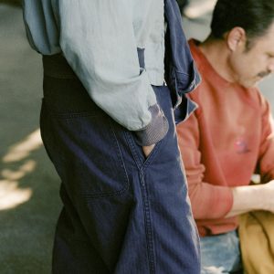 taking cues from an iconic WWII-era coverall. we constructed this iteration with the intent of achieving a more elevated feminine feel without abandoning what makes a vintage coverall great in the first place. sewn from a 100% cotton. 2×1 indigo selvage fabric. each coverall features a straight leg and a belt falling below the natural waist.Â