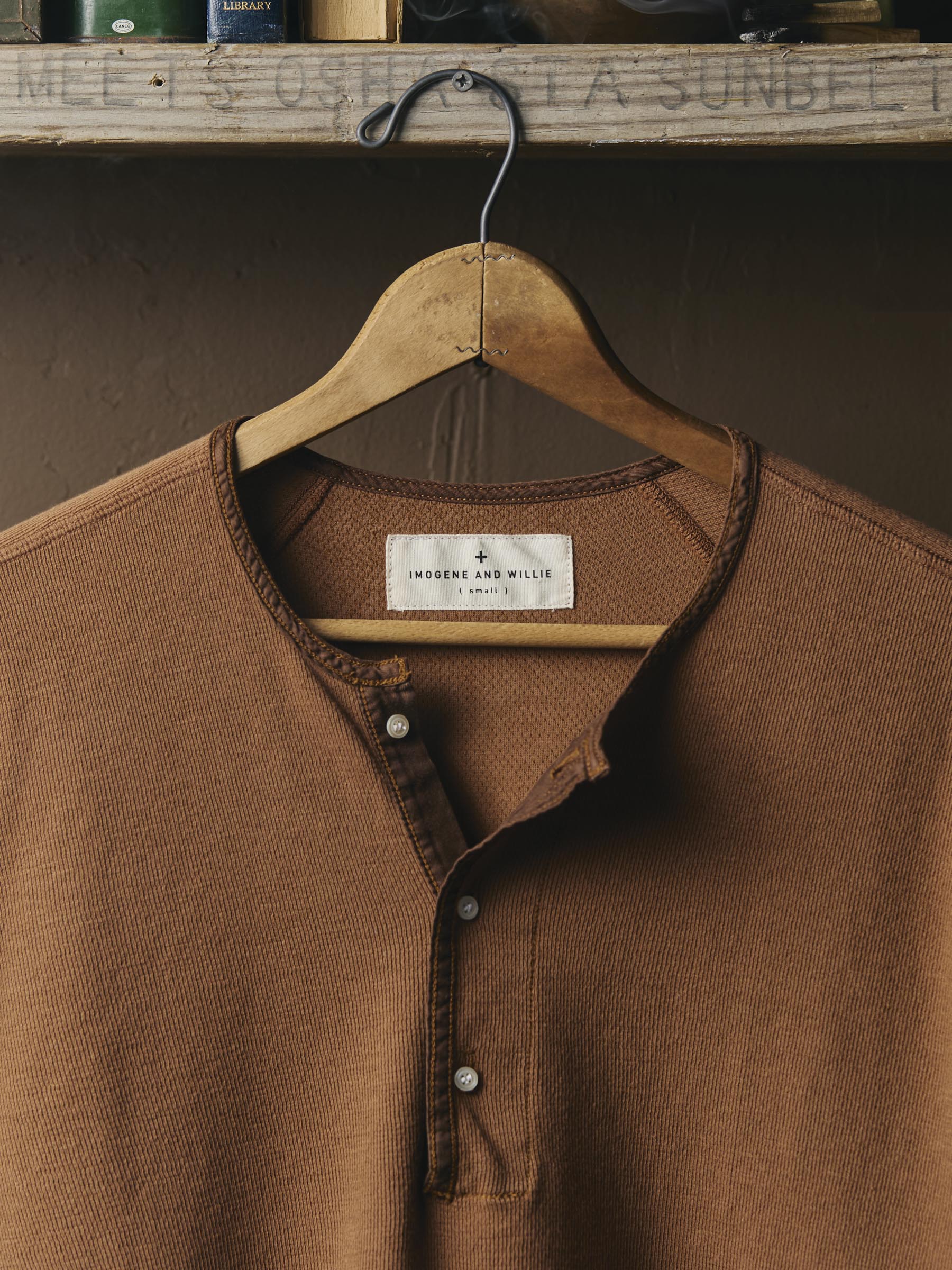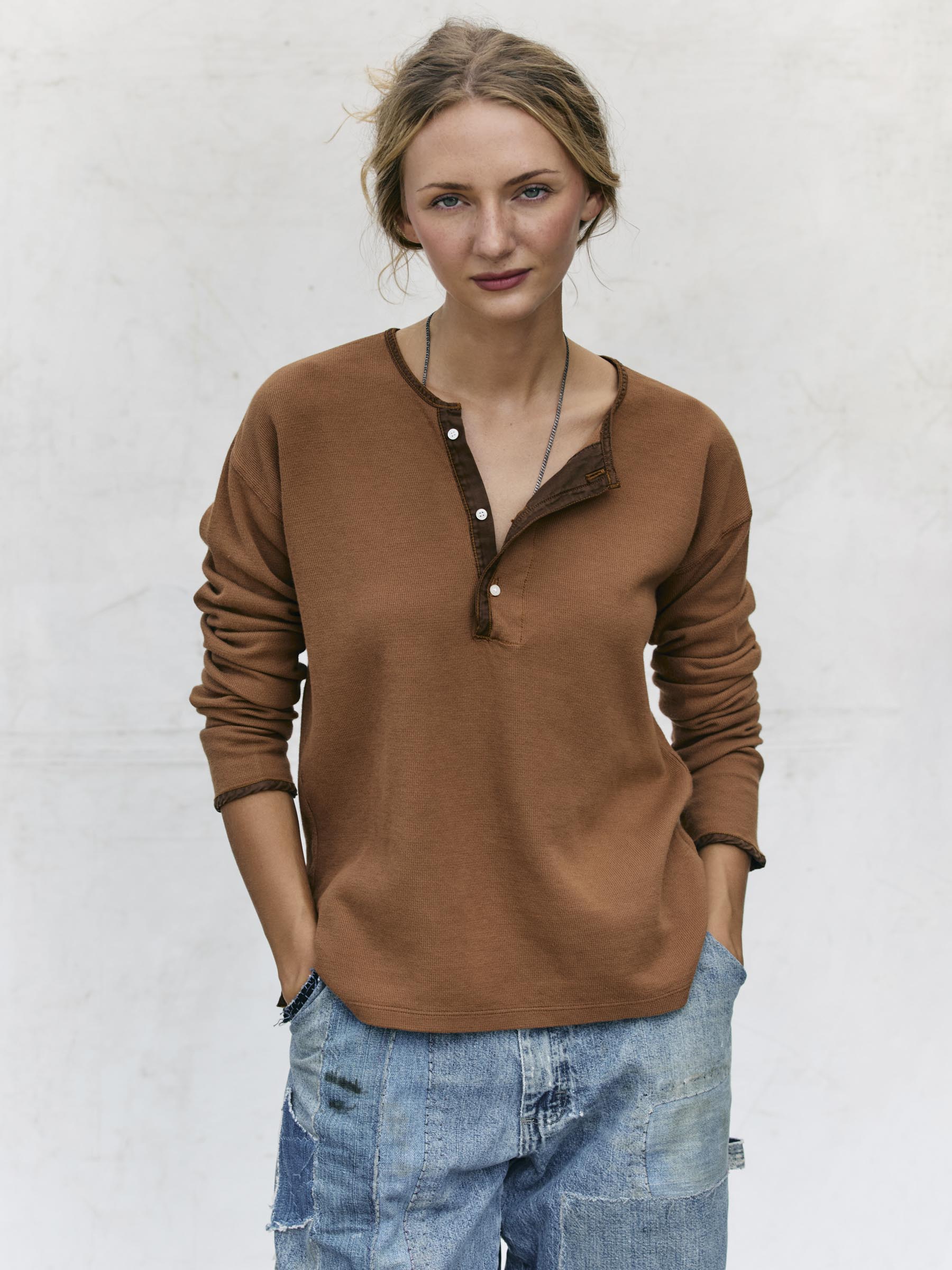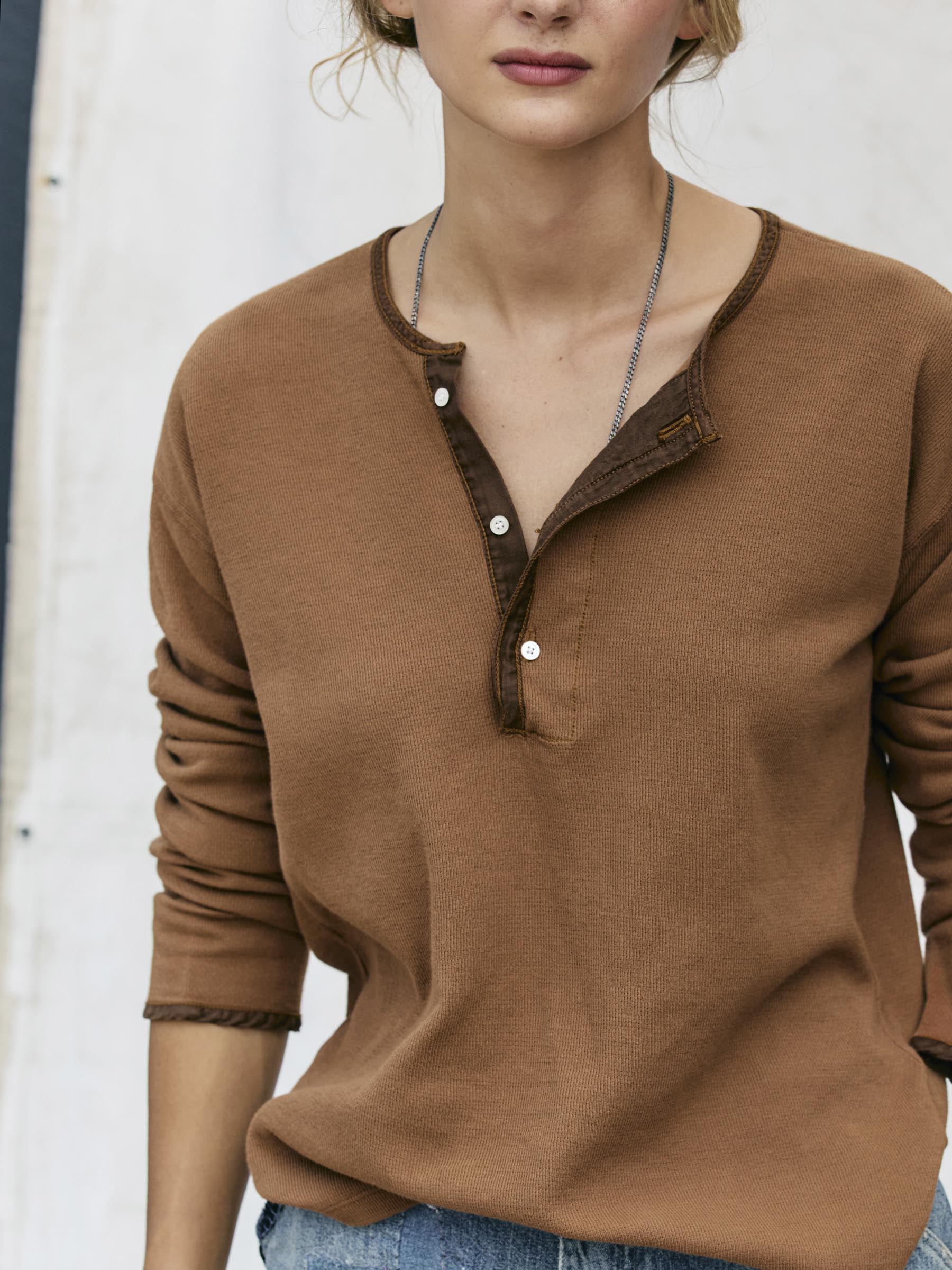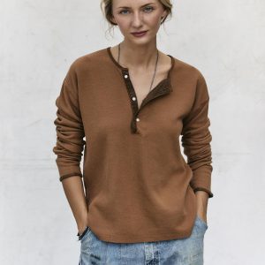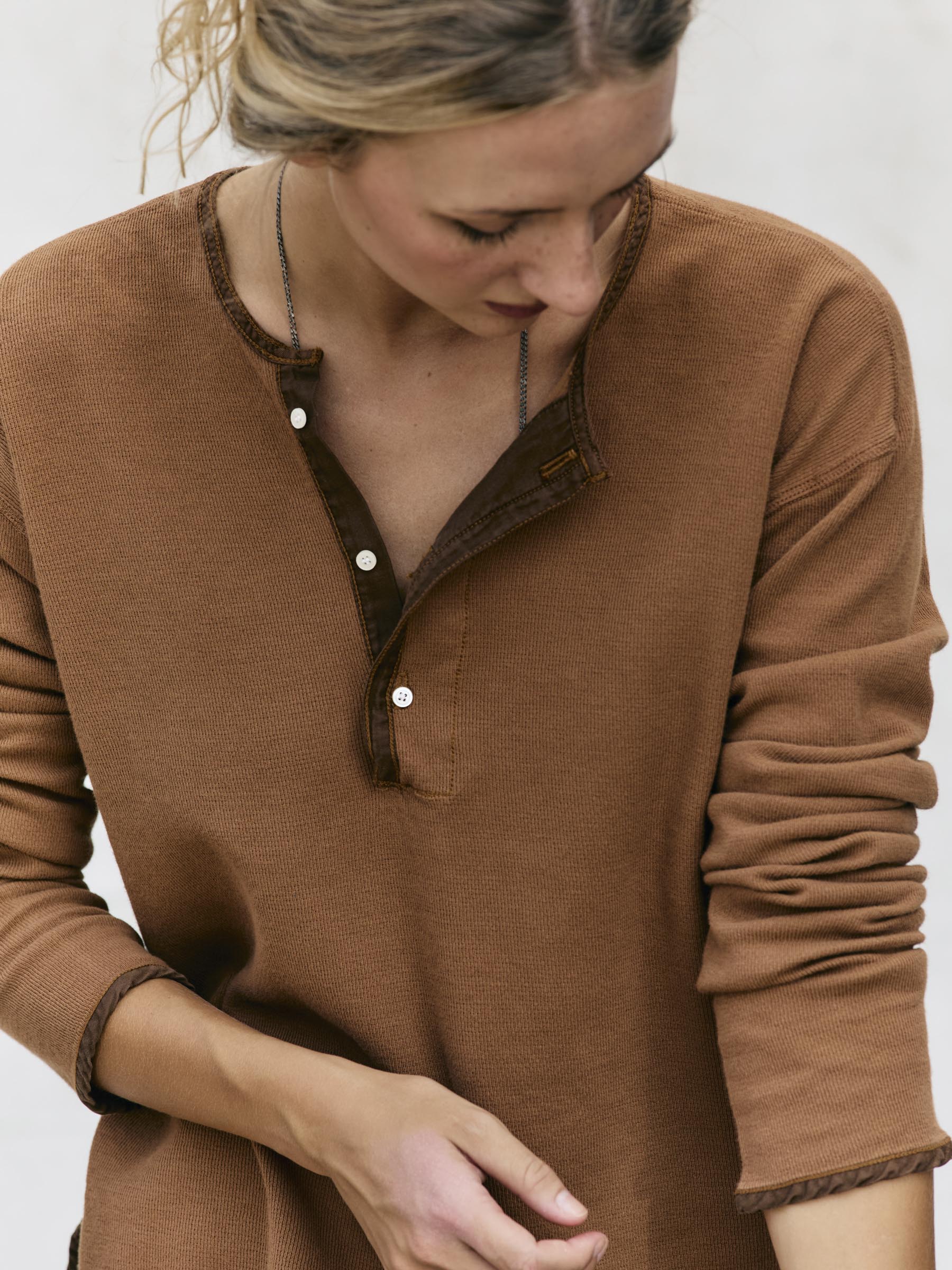 midweight vintage henley in field brown