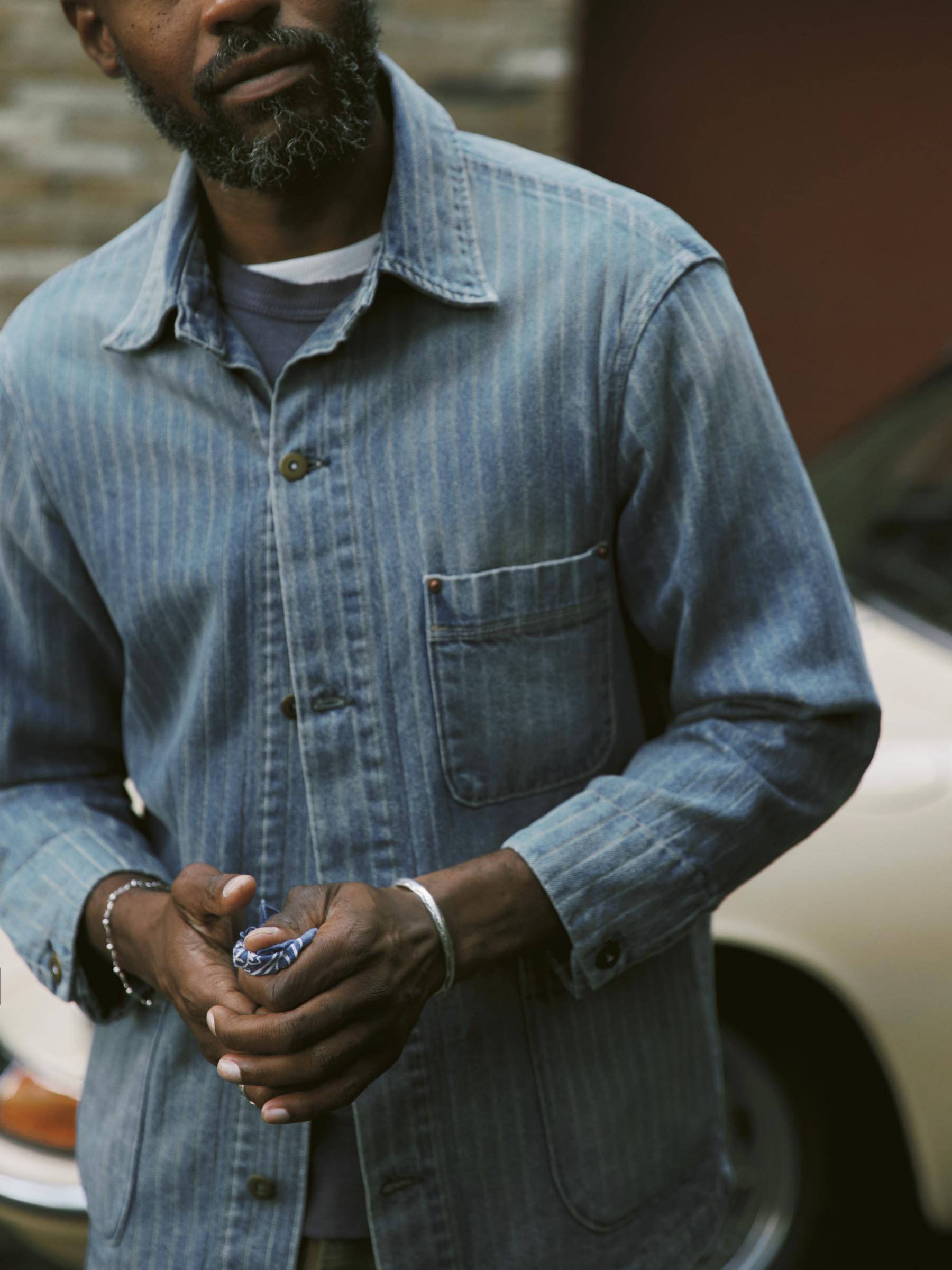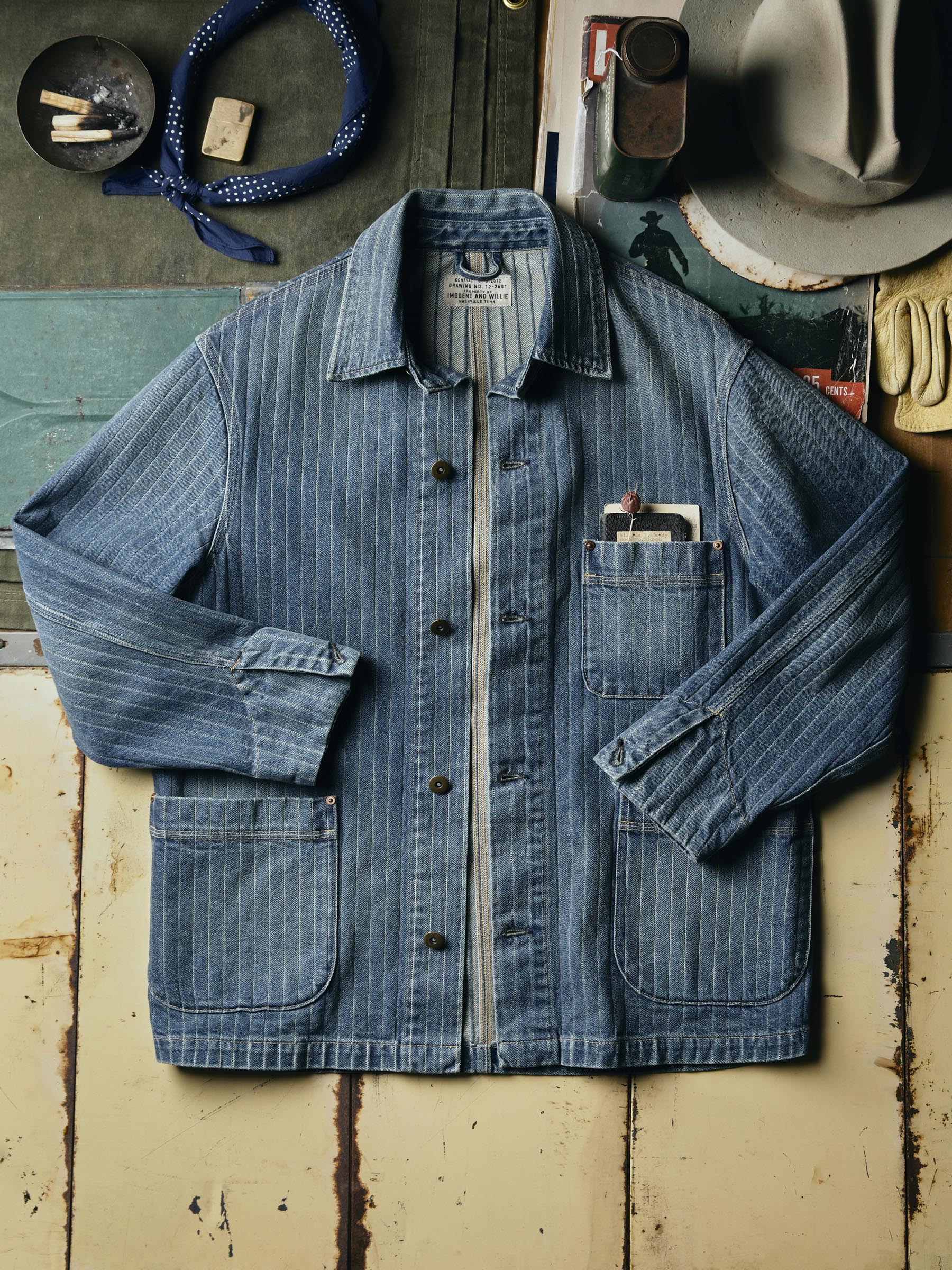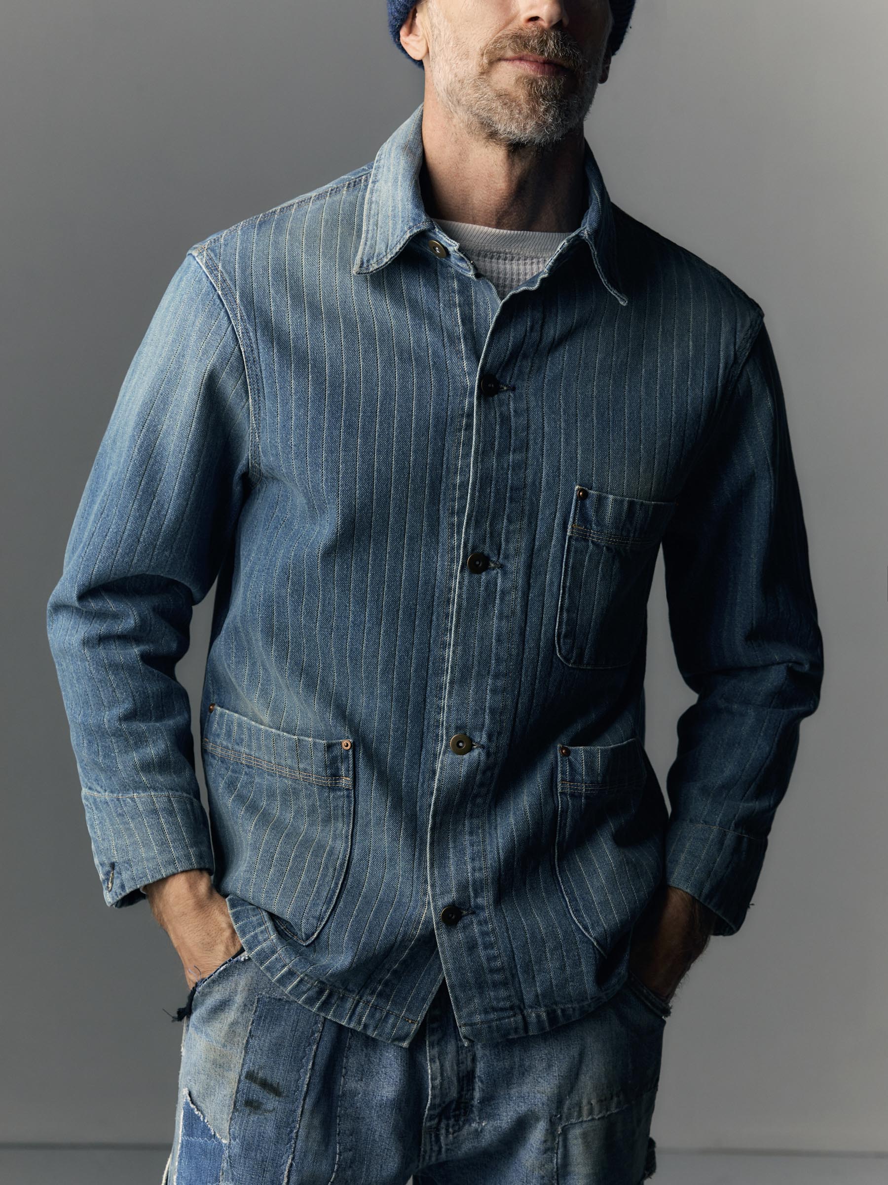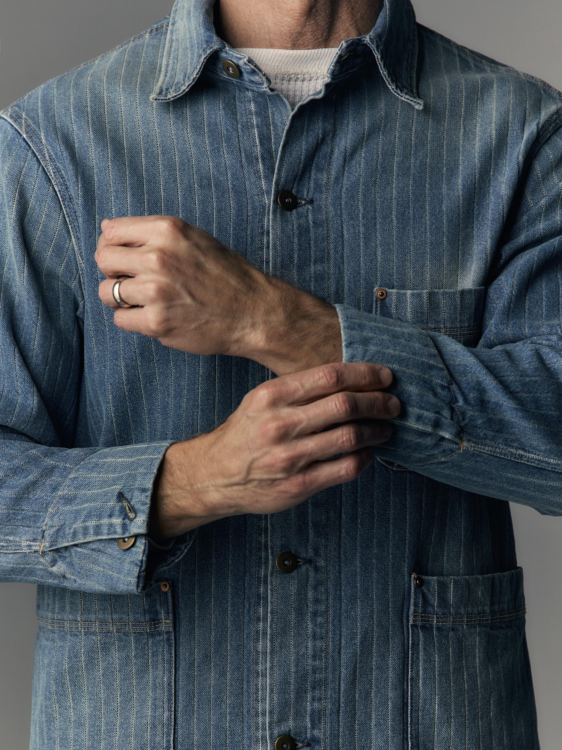 ranch jacket in washed indigo stripe