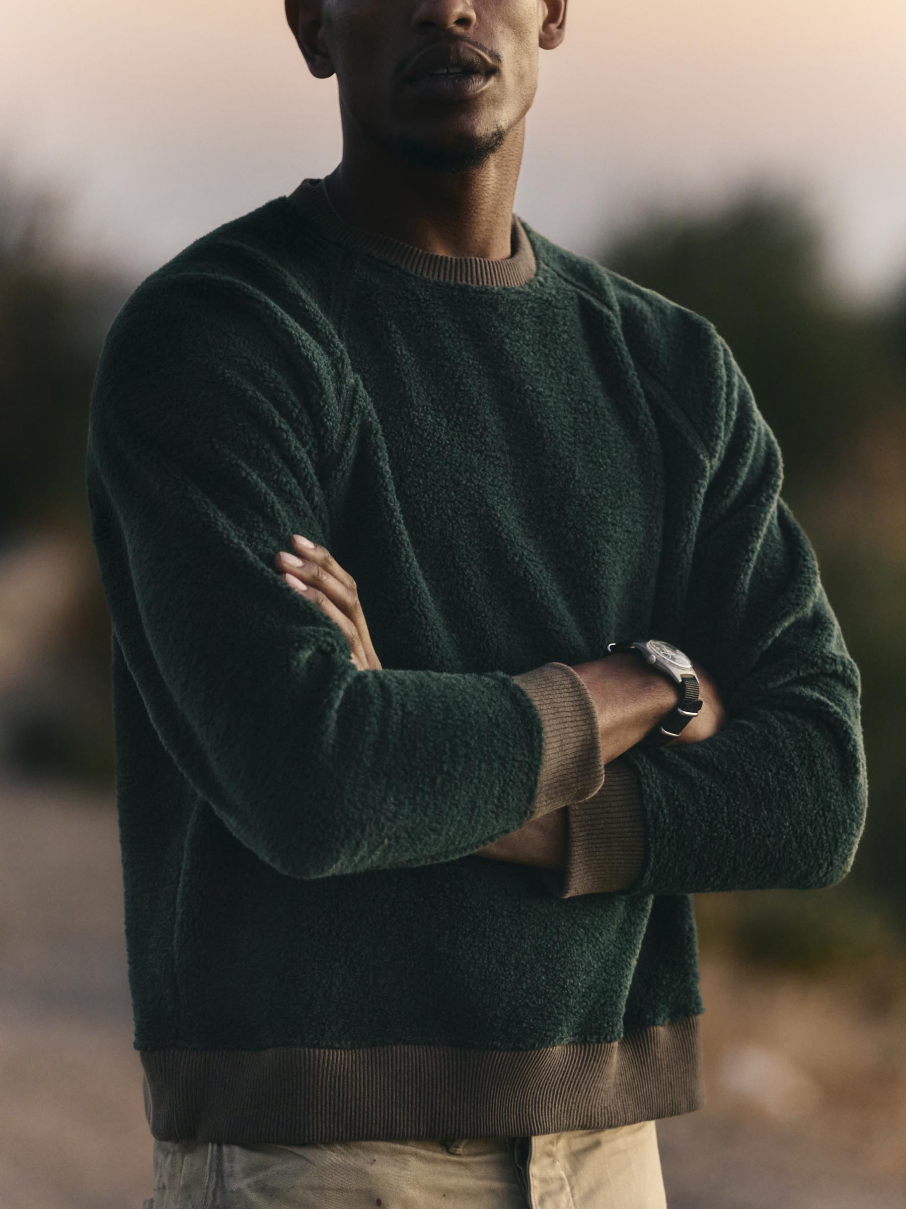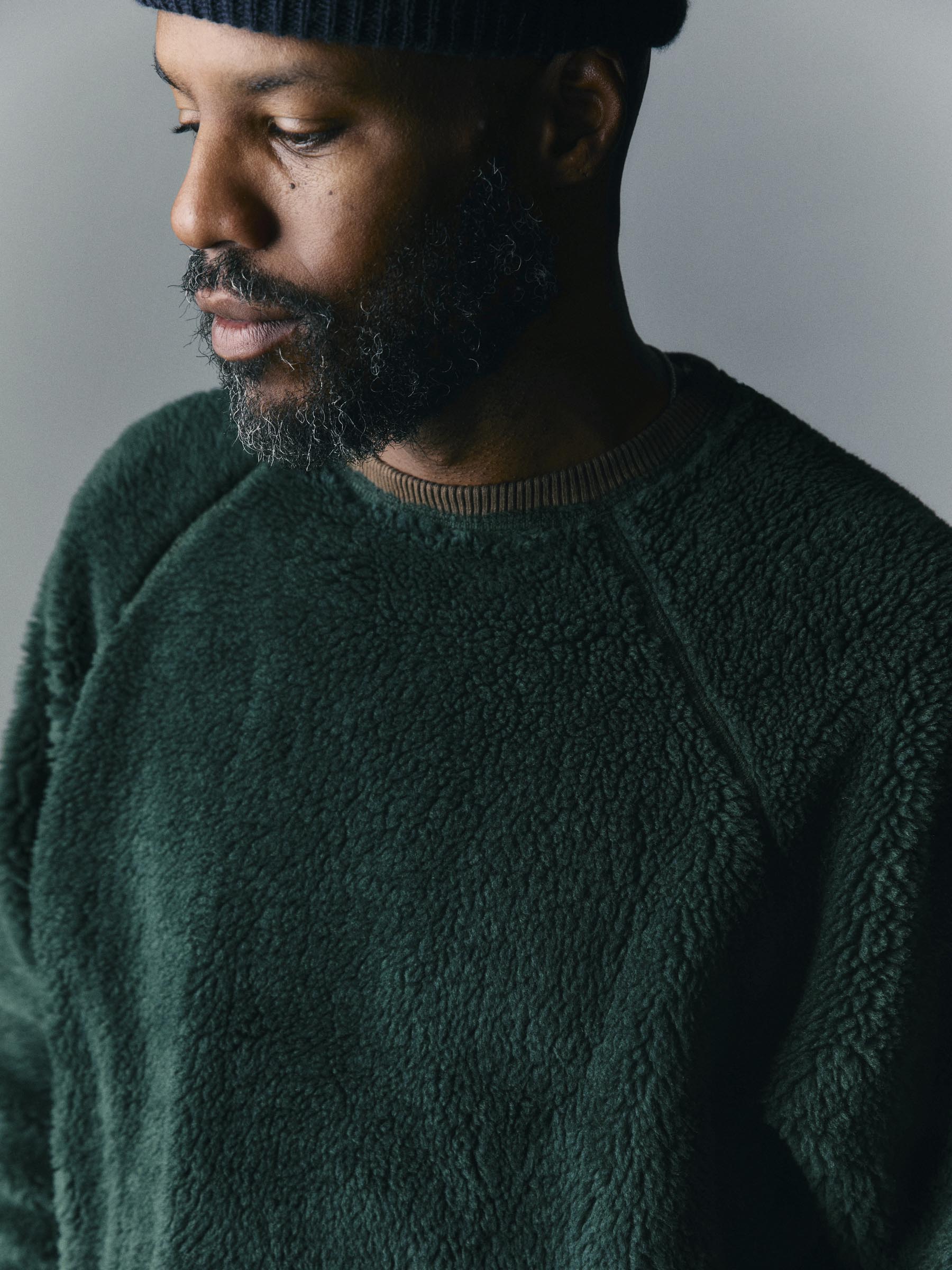 ribbed sherpa crew in fern