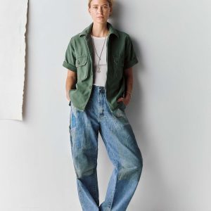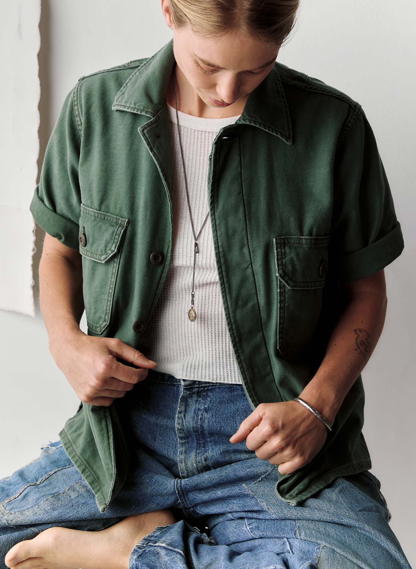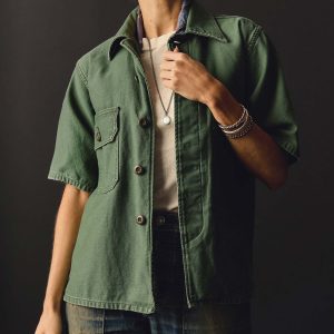 featuring oversized field pockets. a hidden-button placket with a j-stitch finish. and a side-slit straight hem. this iteration of our shirt jacket is the perfect layering piece to accompany you through the changing seasons.
