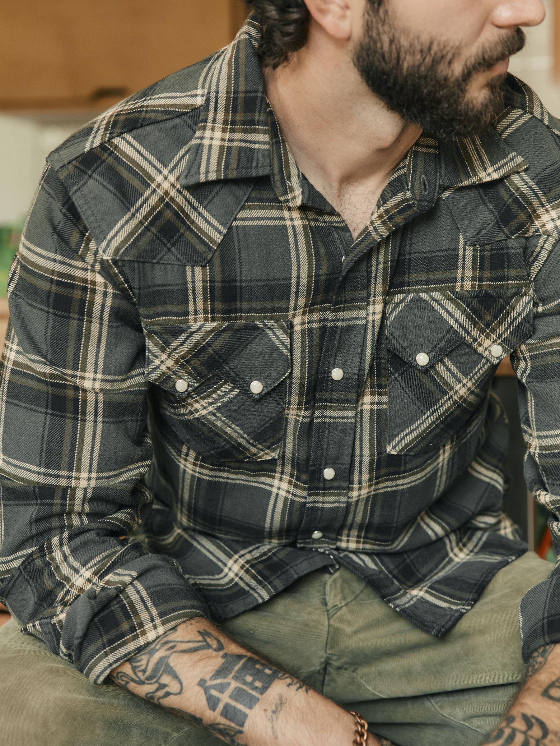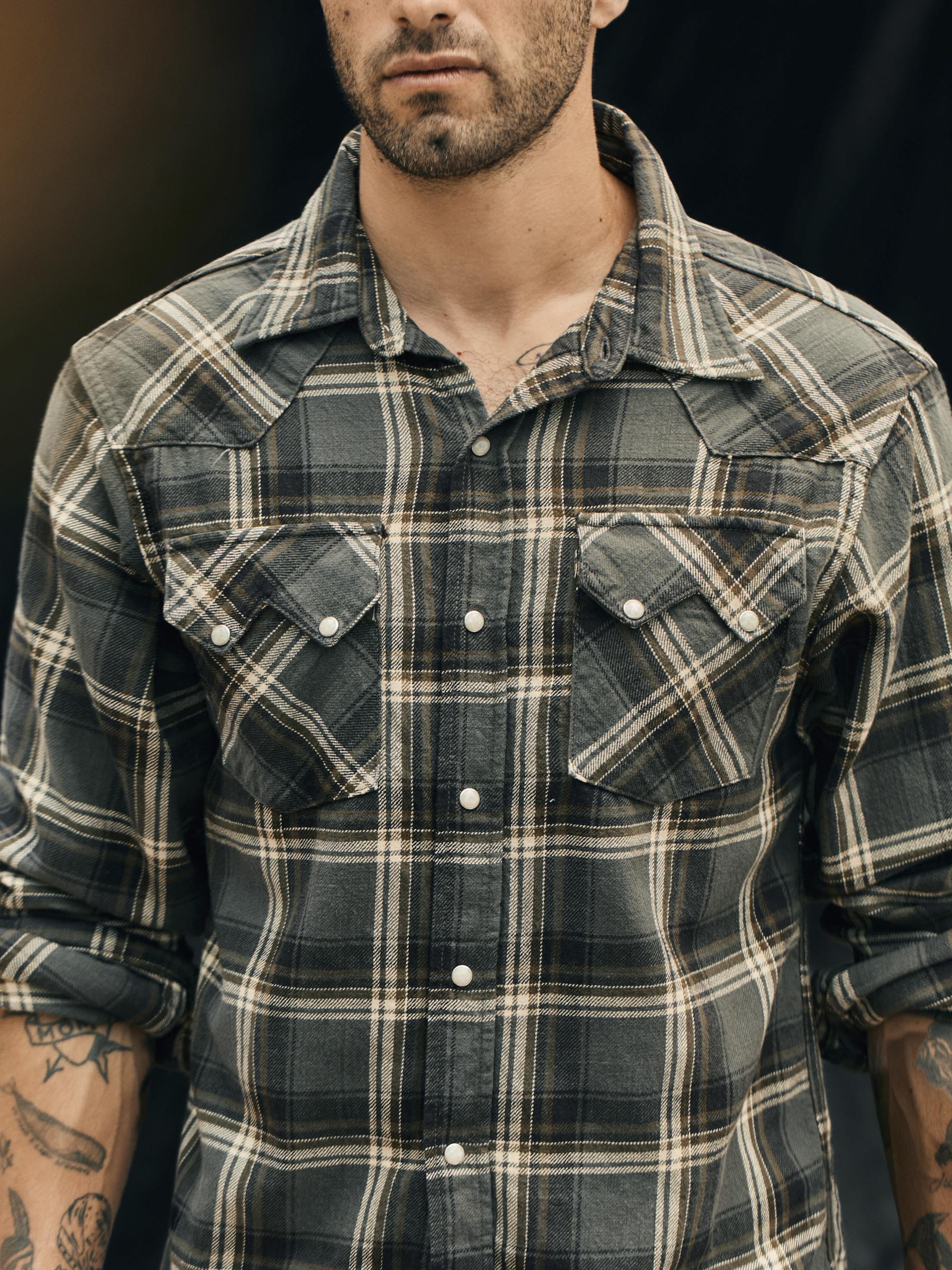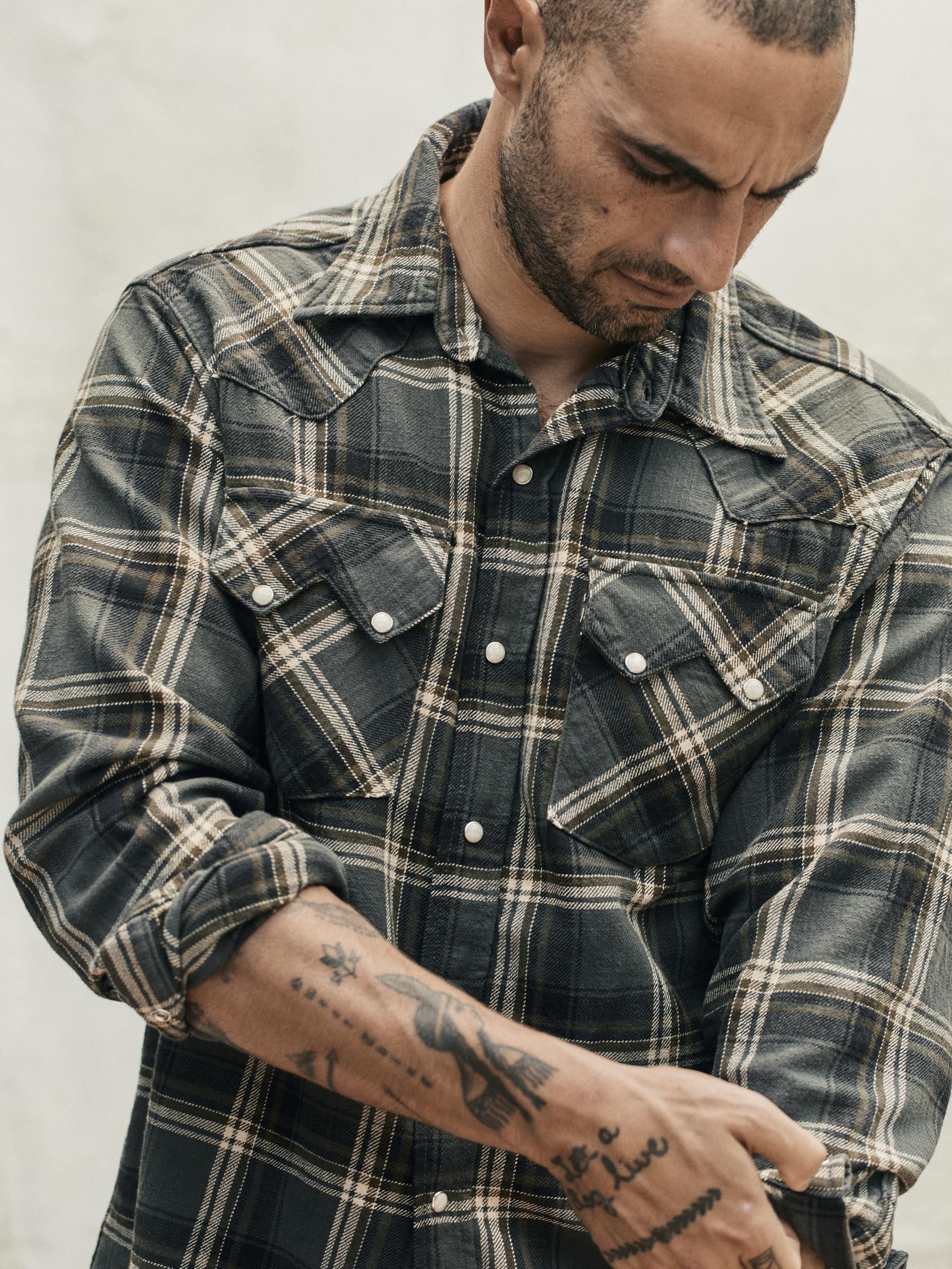 our take on a timeless pearl snap. combining traditional details with an updated. flattering fit.