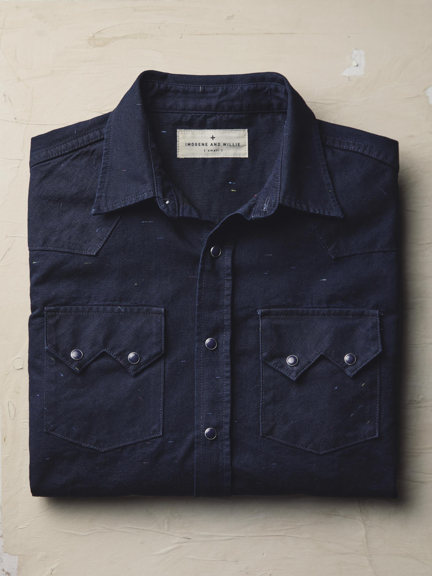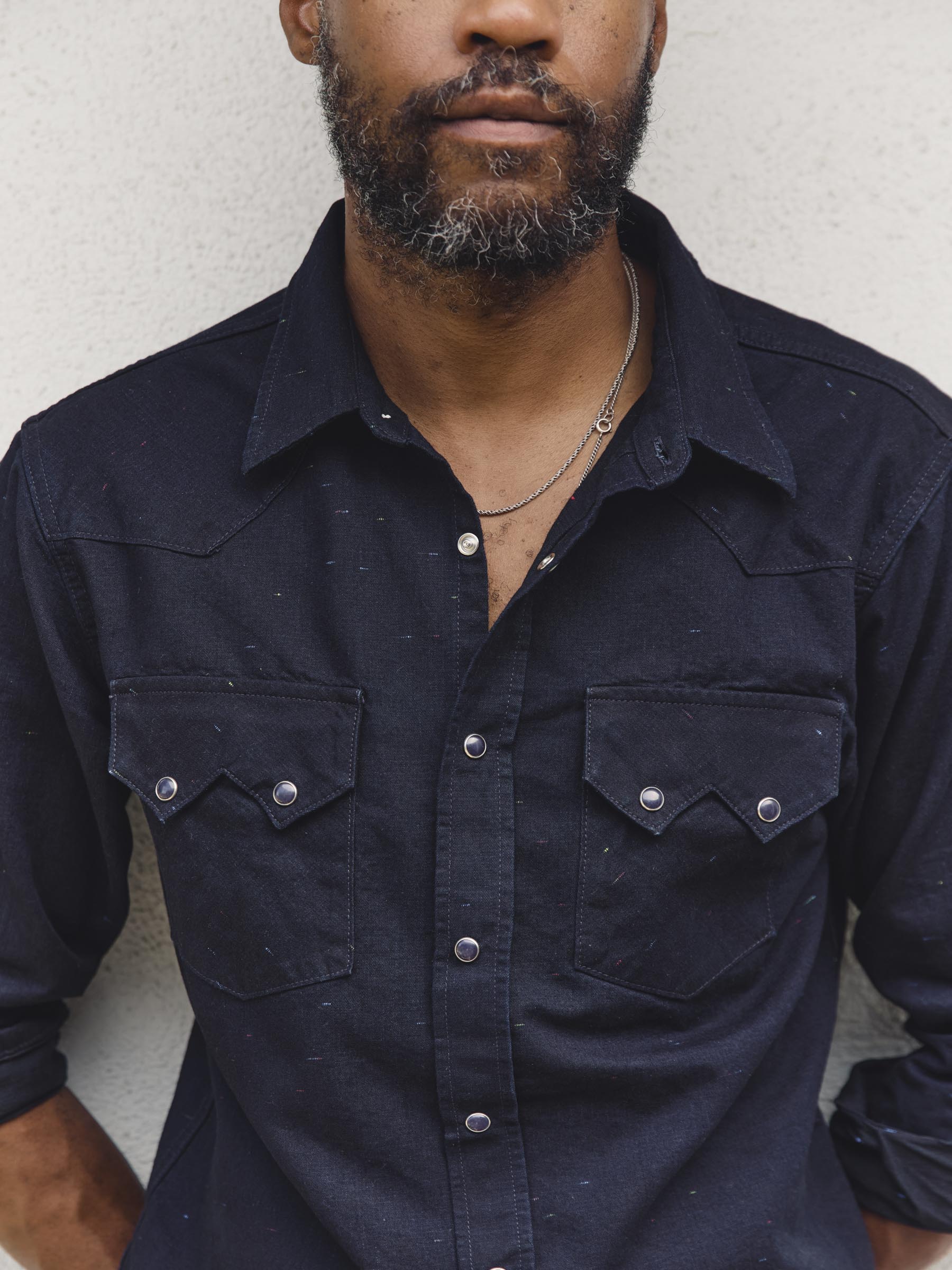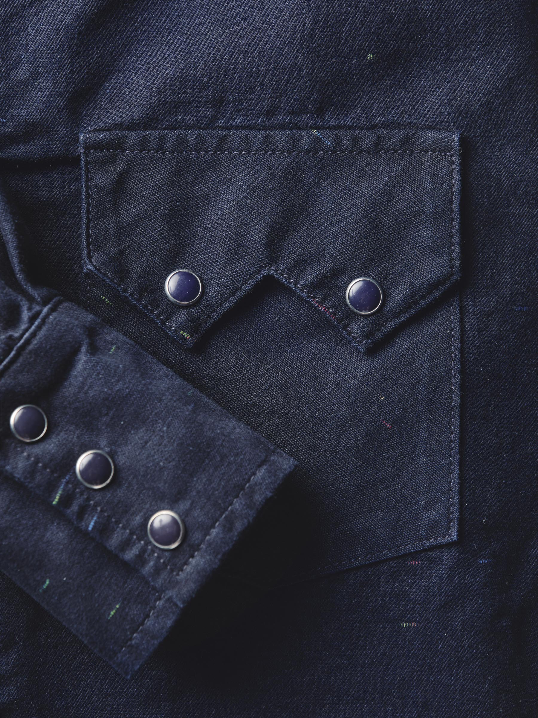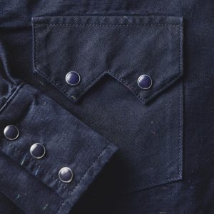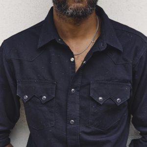 sawtooth pearl snap in reverse black indigo nep