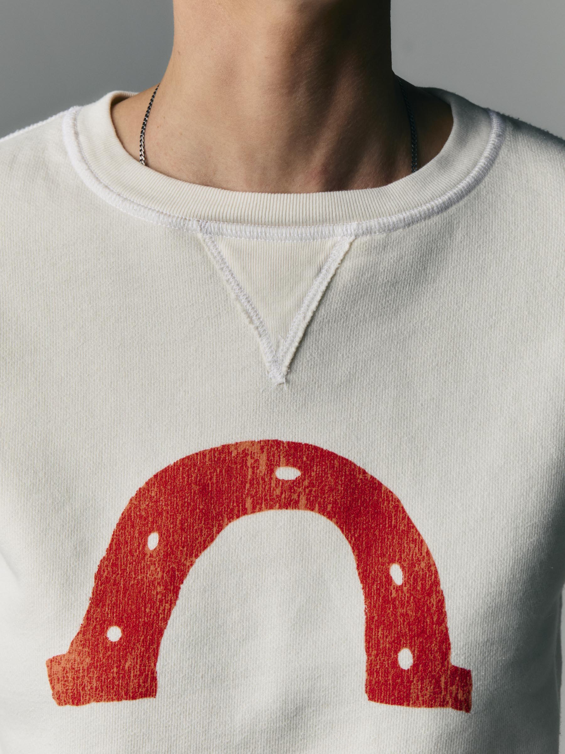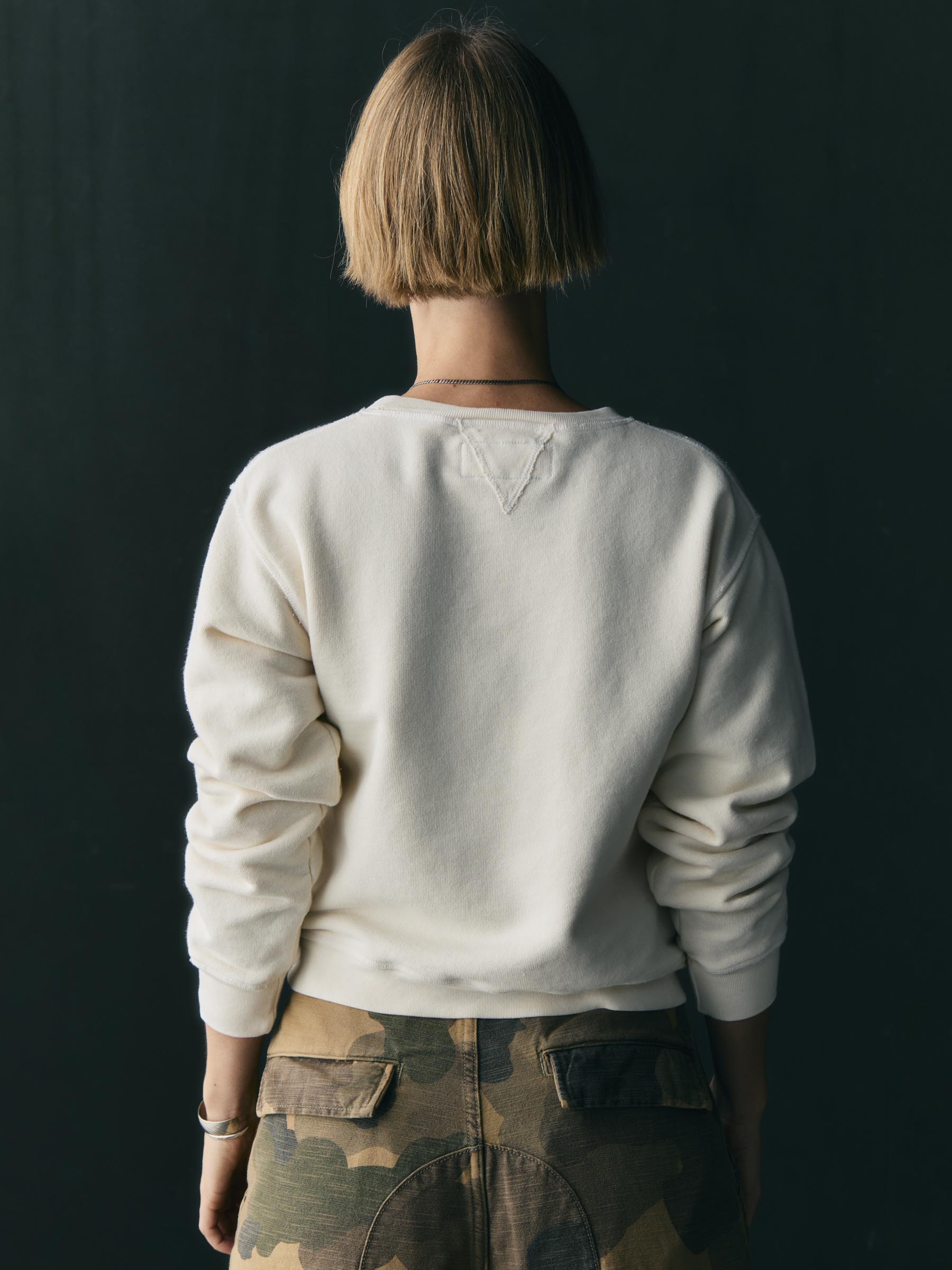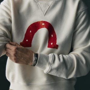 patterned after a 50s-era crew neck. this sweatshirt was a chance for us to pair a truly incredible fabric with a vintage inspired fit. while also challenging ourselves to recreate the subtle details of the original piece that captured our attention from the very beginning.