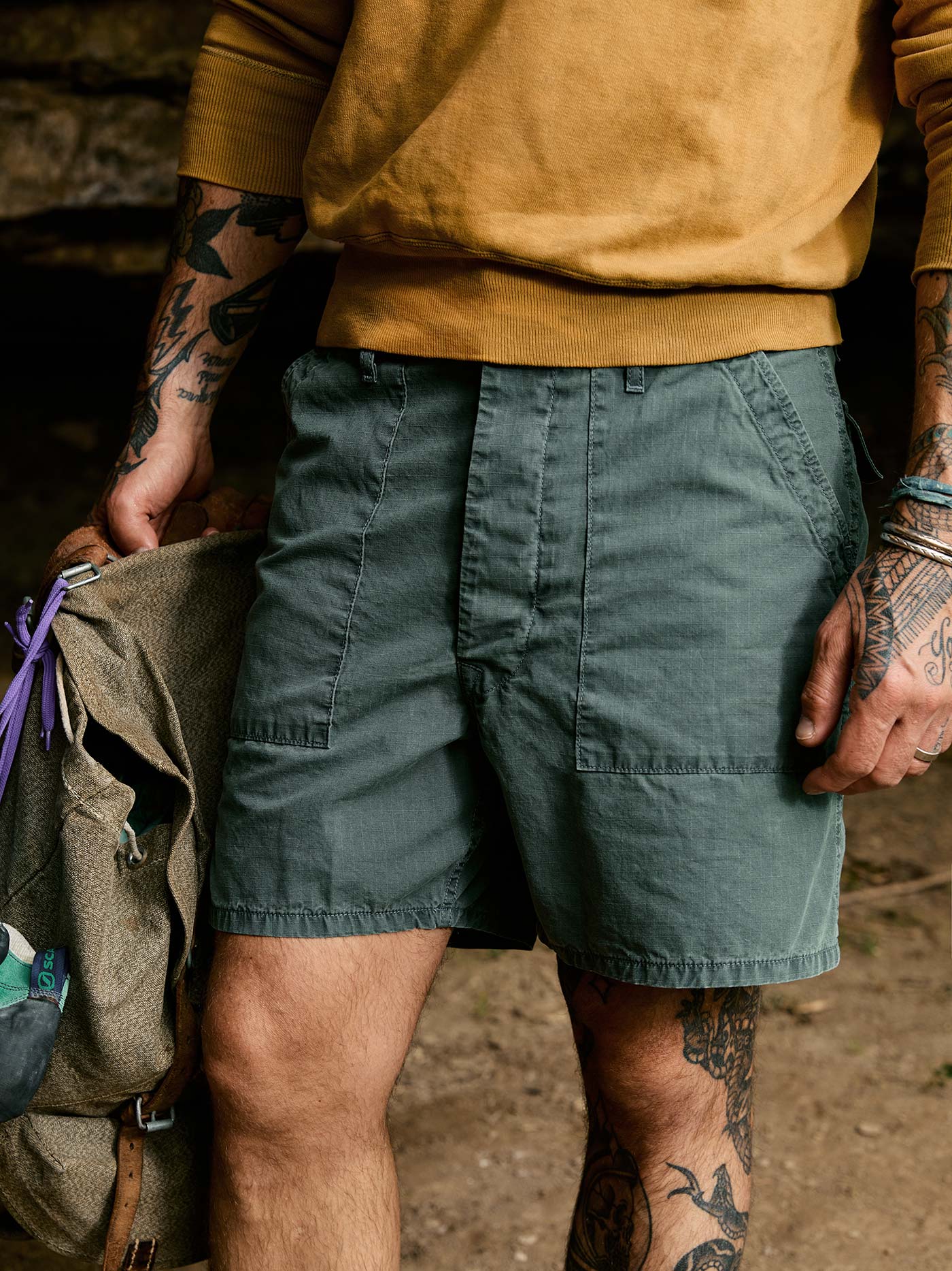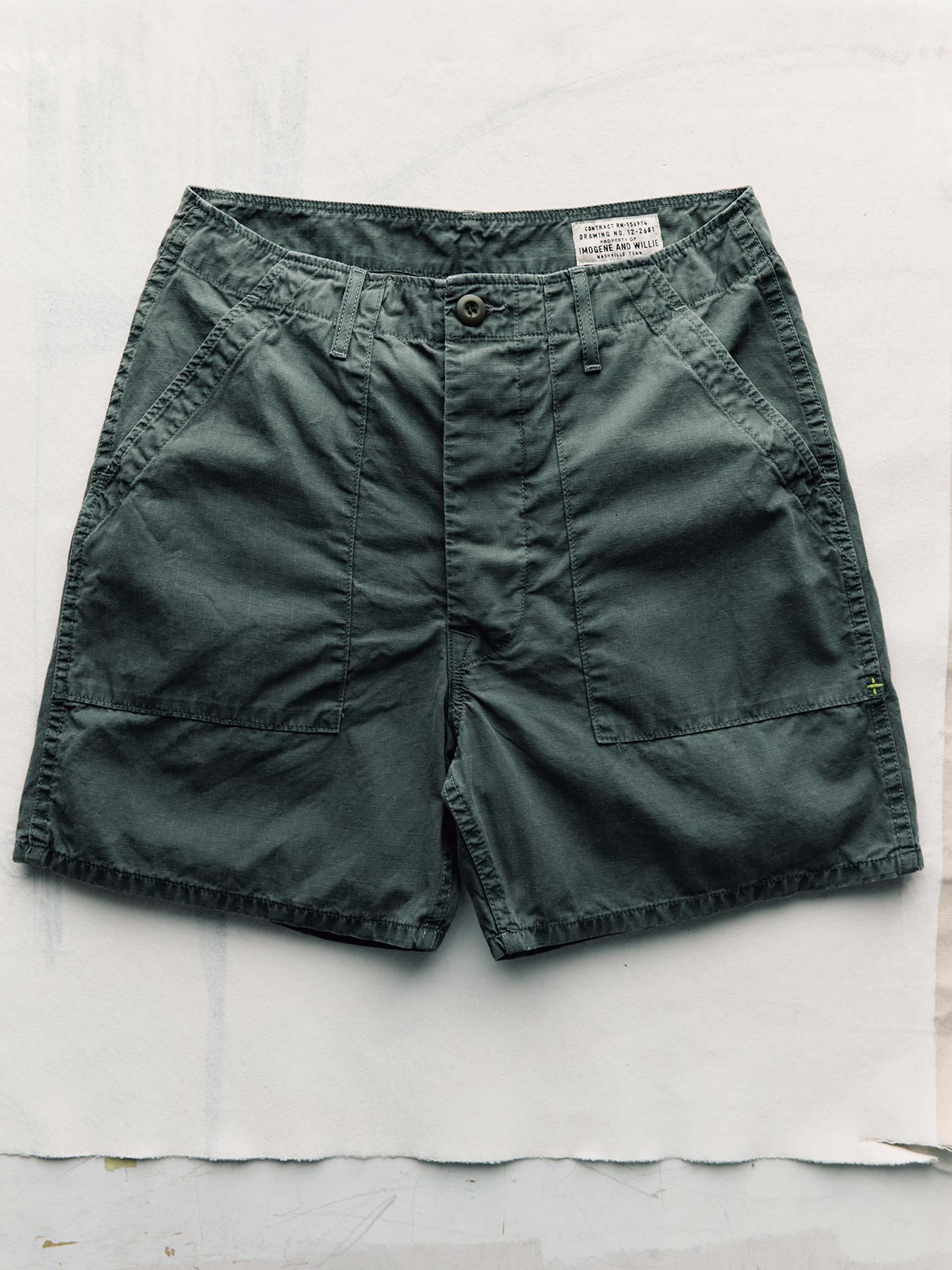 originally inspired by a 1950’s military-issue classic. the fatigue short is a recreation of a i+w warm weather staple. sewn from a lightweight 8oz. 100% cotton ripstop fabric.