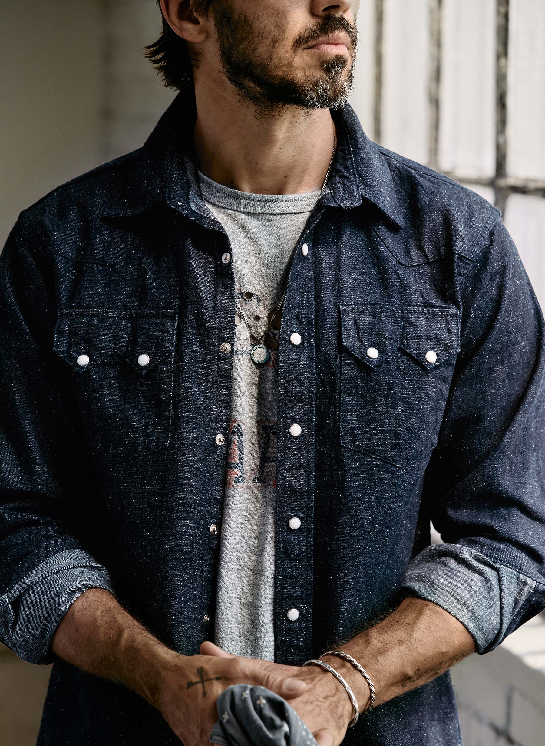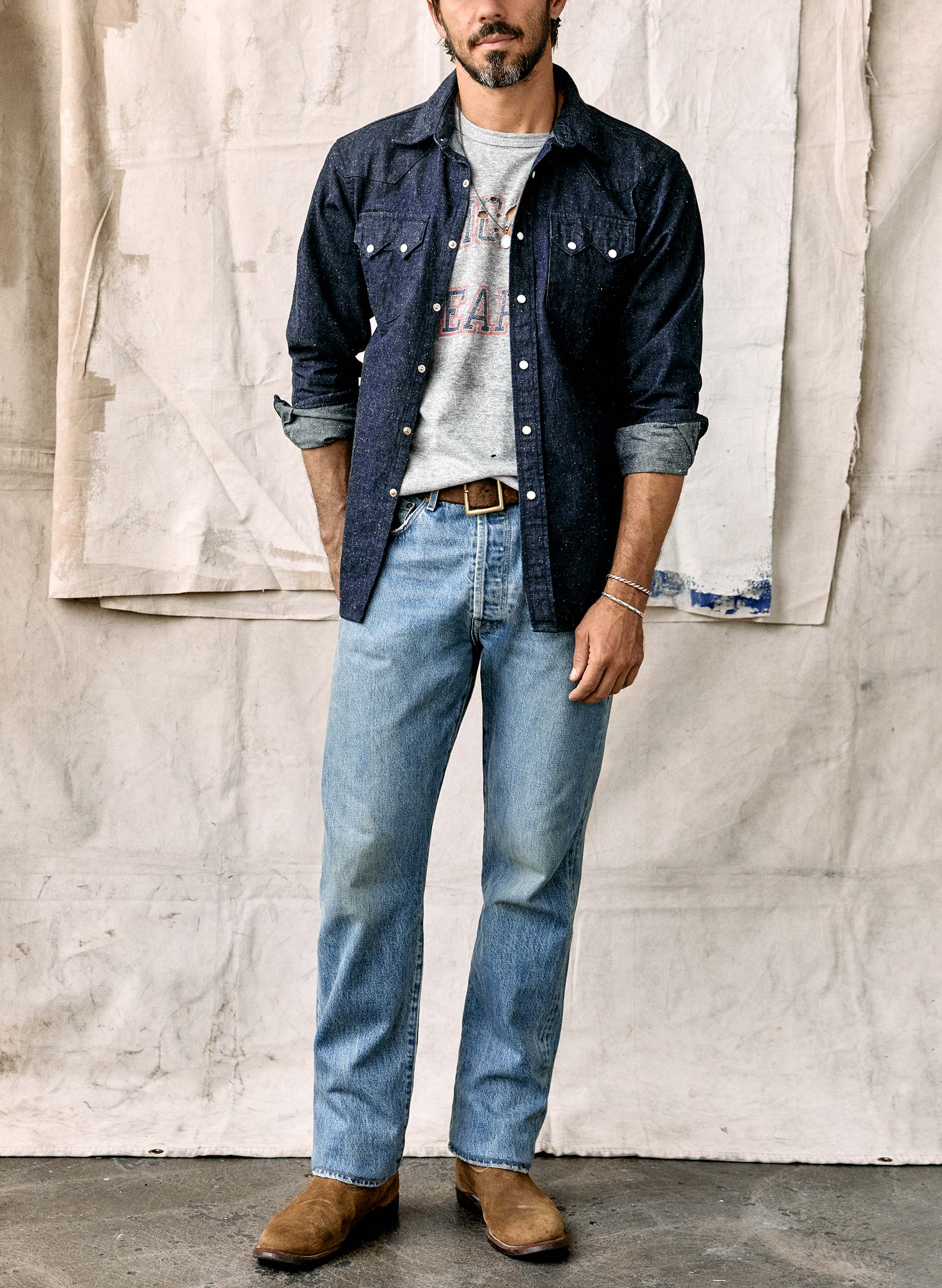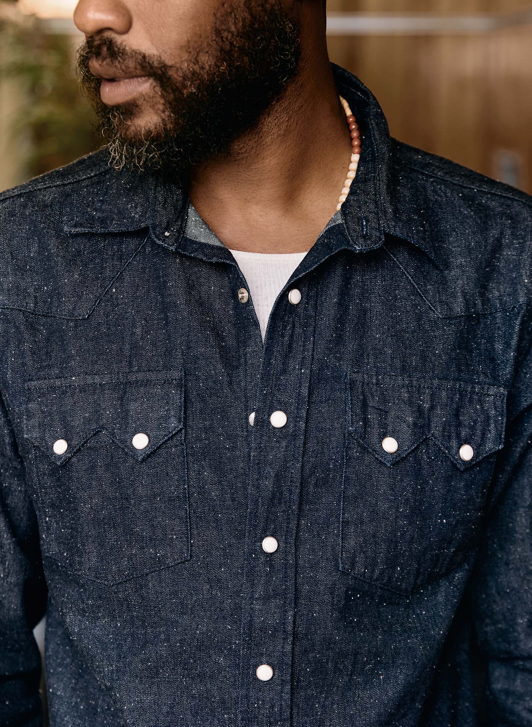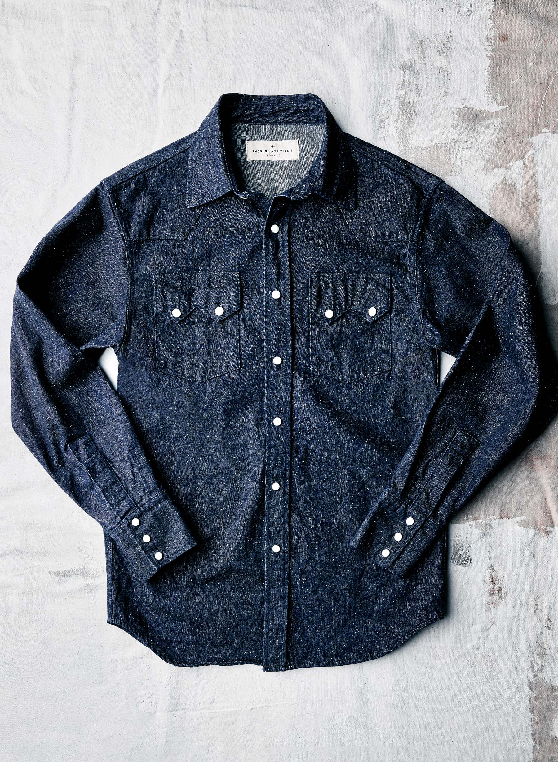 the sawtooth pearl snap in indigo nep