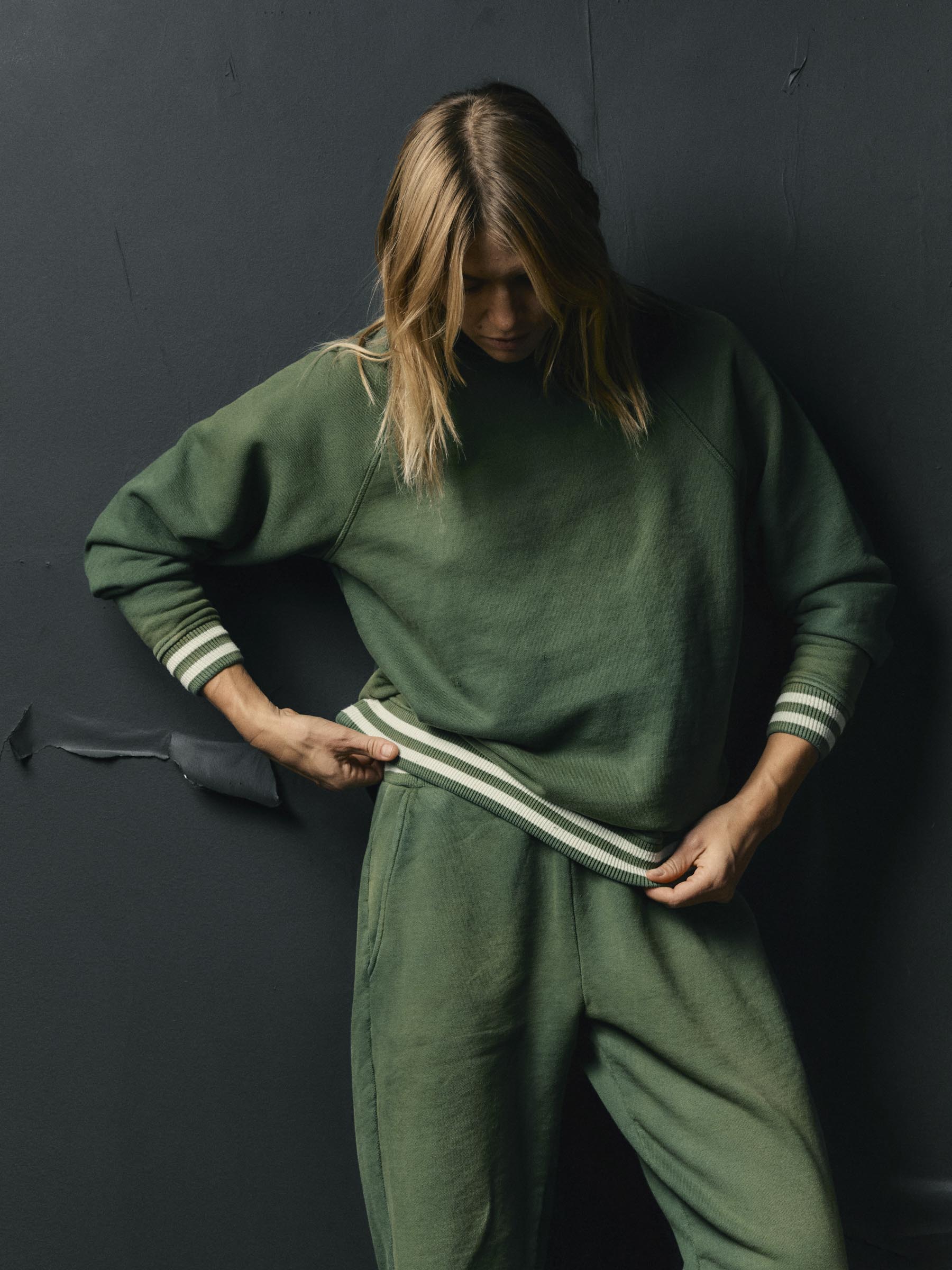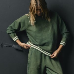 sewn from an American-made cotton terry. we washed this piece down to reflect the highs & lows of a well-loved garment. then finished off the sleeves and hem with a custom developed American-made rib.
