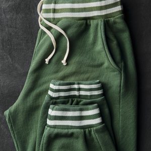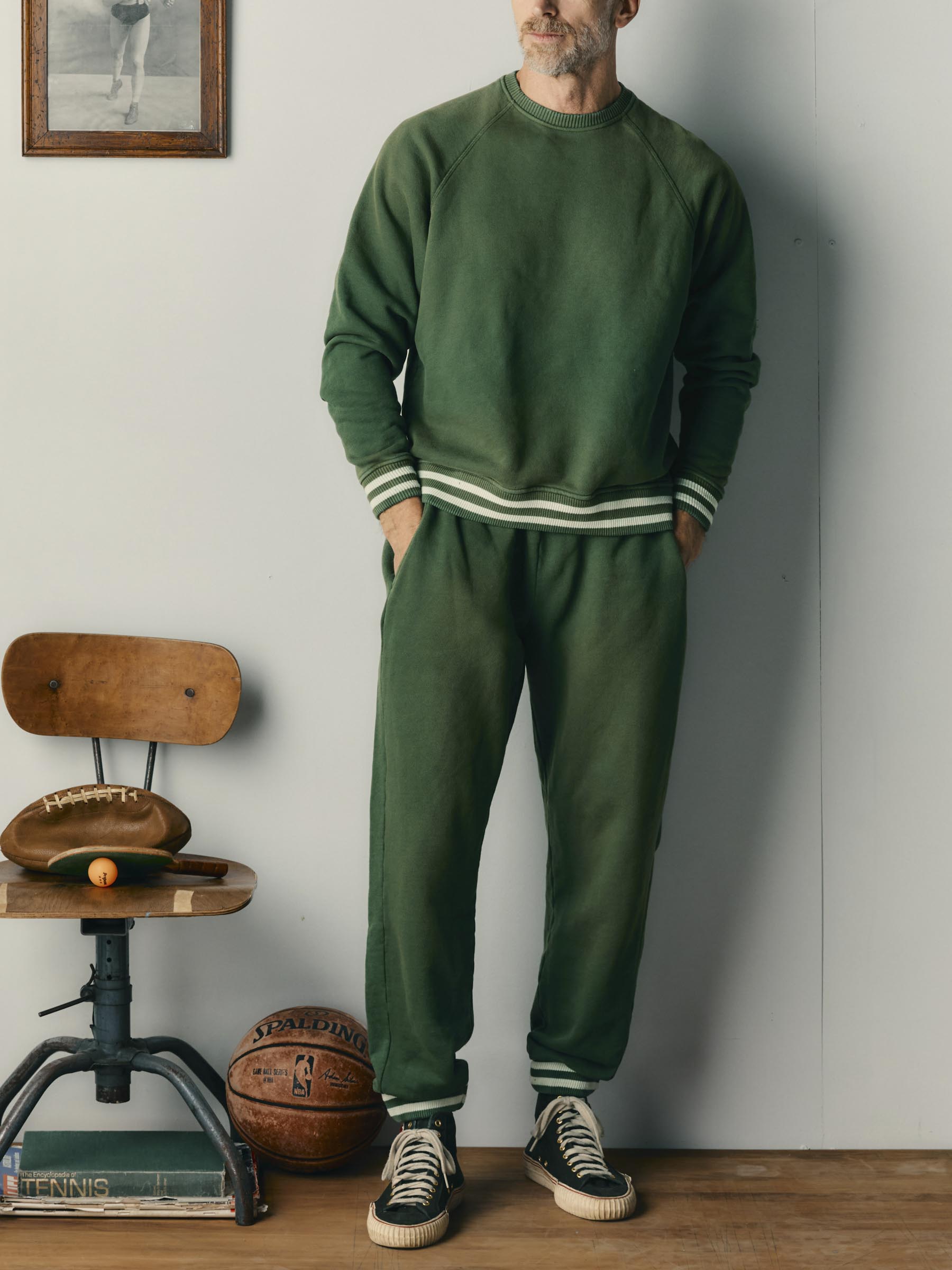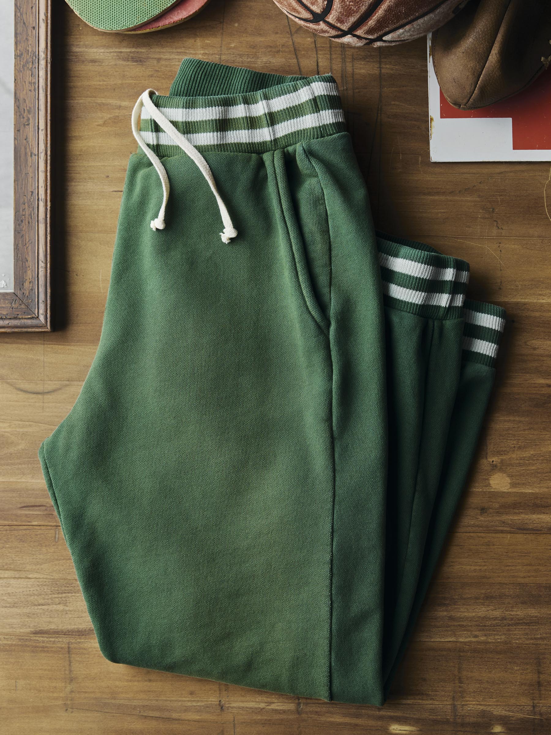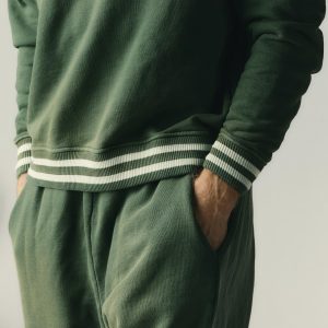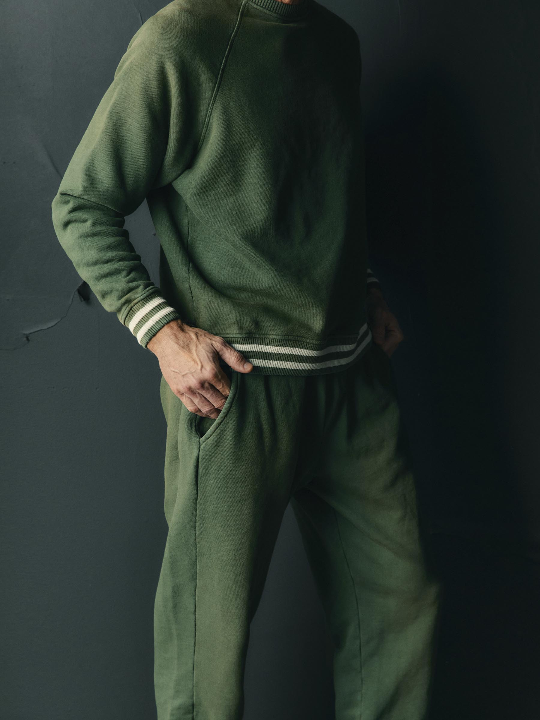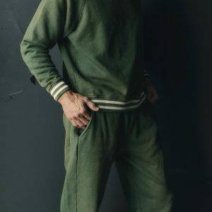sewn from an American-made cotton terry. we washed this piece down to reflect the highs & lows of a well-loved garment. then finished off the waist and pant legs with a custom developed American-made rib.